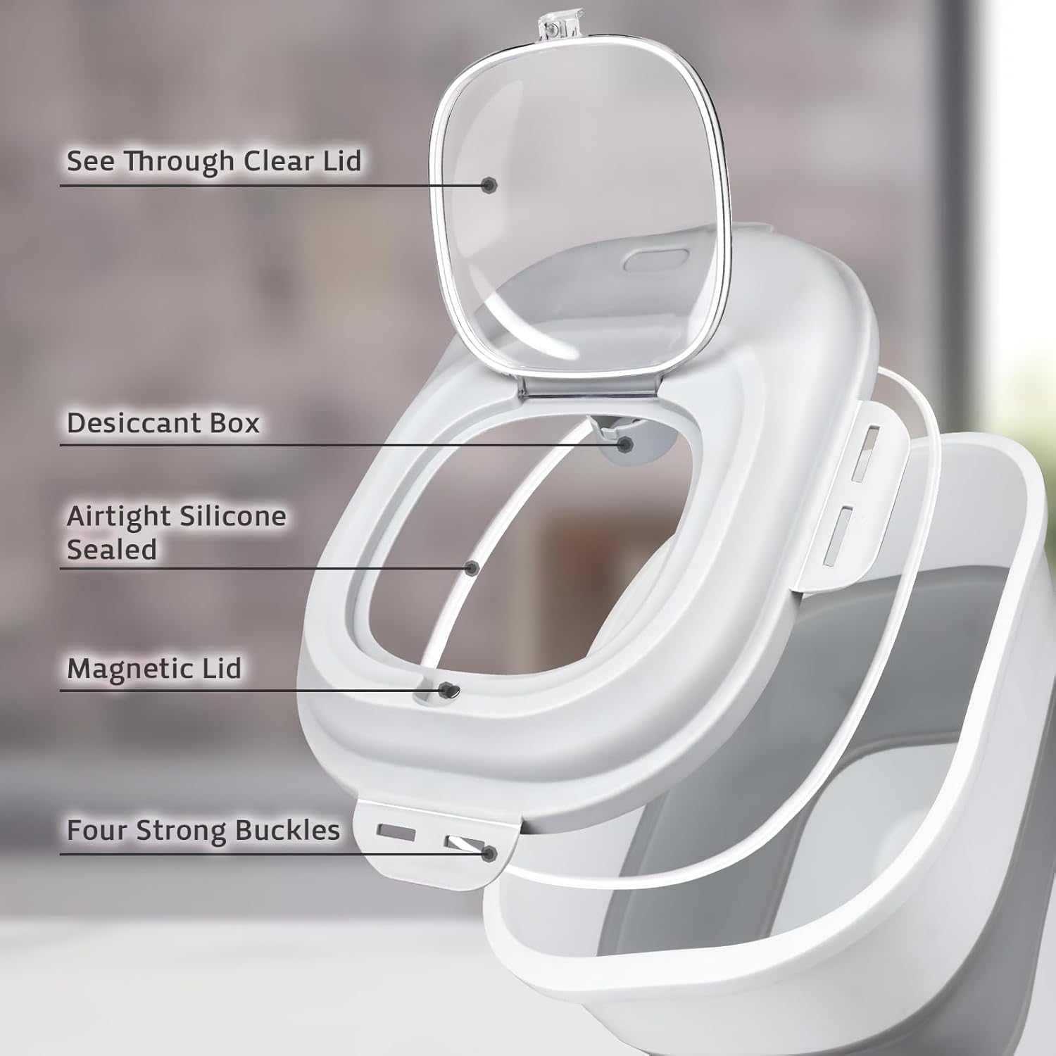 - Save Space: When you only need a bit of food, you can fold it up to save space. It takes less room in your kitchen or car. It’s also portable for travel. Comes with a scoop and Measuring cup for easy access and measurements
