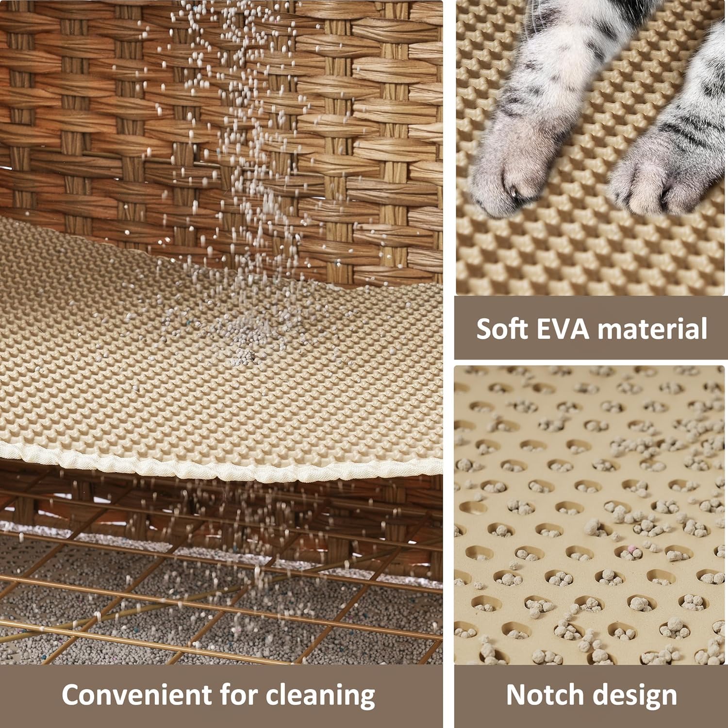 - 【Easier Cat Care】The cat washroom is built with soft litter mat which allows cats to walk comfortably. More importantly, the litter mat is designed with large holes so that the scattered cat litter can drop on the bottom mat. And then you can pull the bottom mat out, dump the scattered cat litter, saving you the trouble of cleaning up scattered cat litter every day.