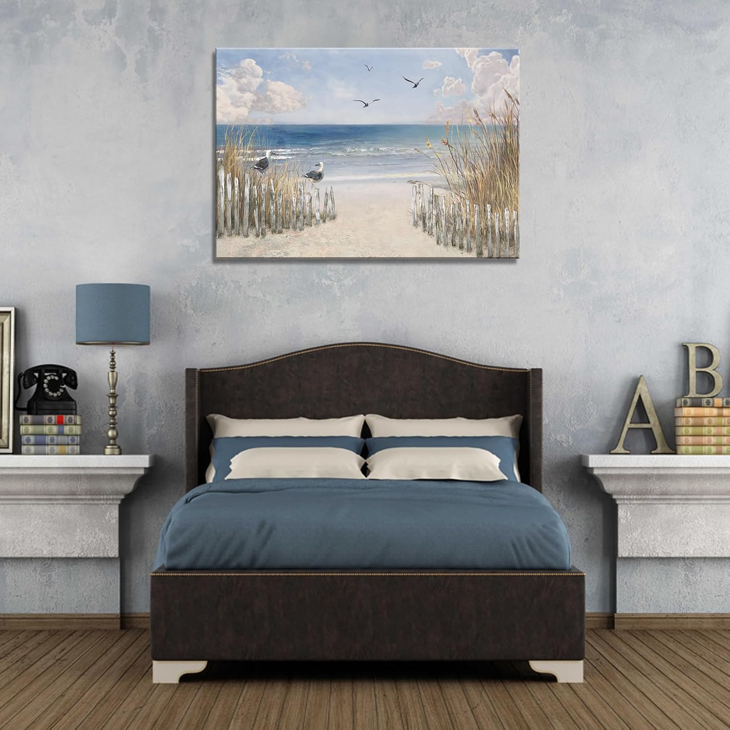 XXMWallArt FC3781 Sandy Beach Wall Art Canvas Print Wall Art Seascape Blue Print Home Decor Abstract Coastal Picture Modern Ocean Artwork for Living Room Bedroom Bathroom Office Decor