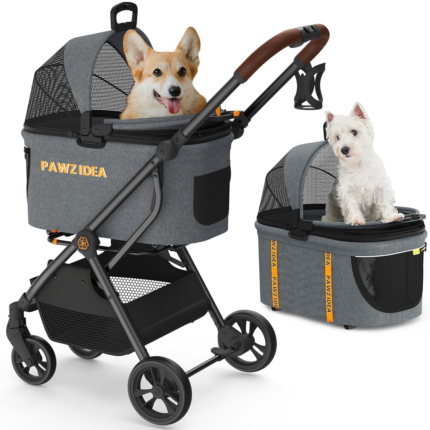 PAWZIDEA Pet Stroller 4 in 1, Dog Strollers for Small/Medium Dogs with Detachable Carrier Easy Lock Canopy, Seatbelt Puppy Car Seat, Cozy House, Foldable & Lightweight Jogger Cat Stroller, 4 Wheels