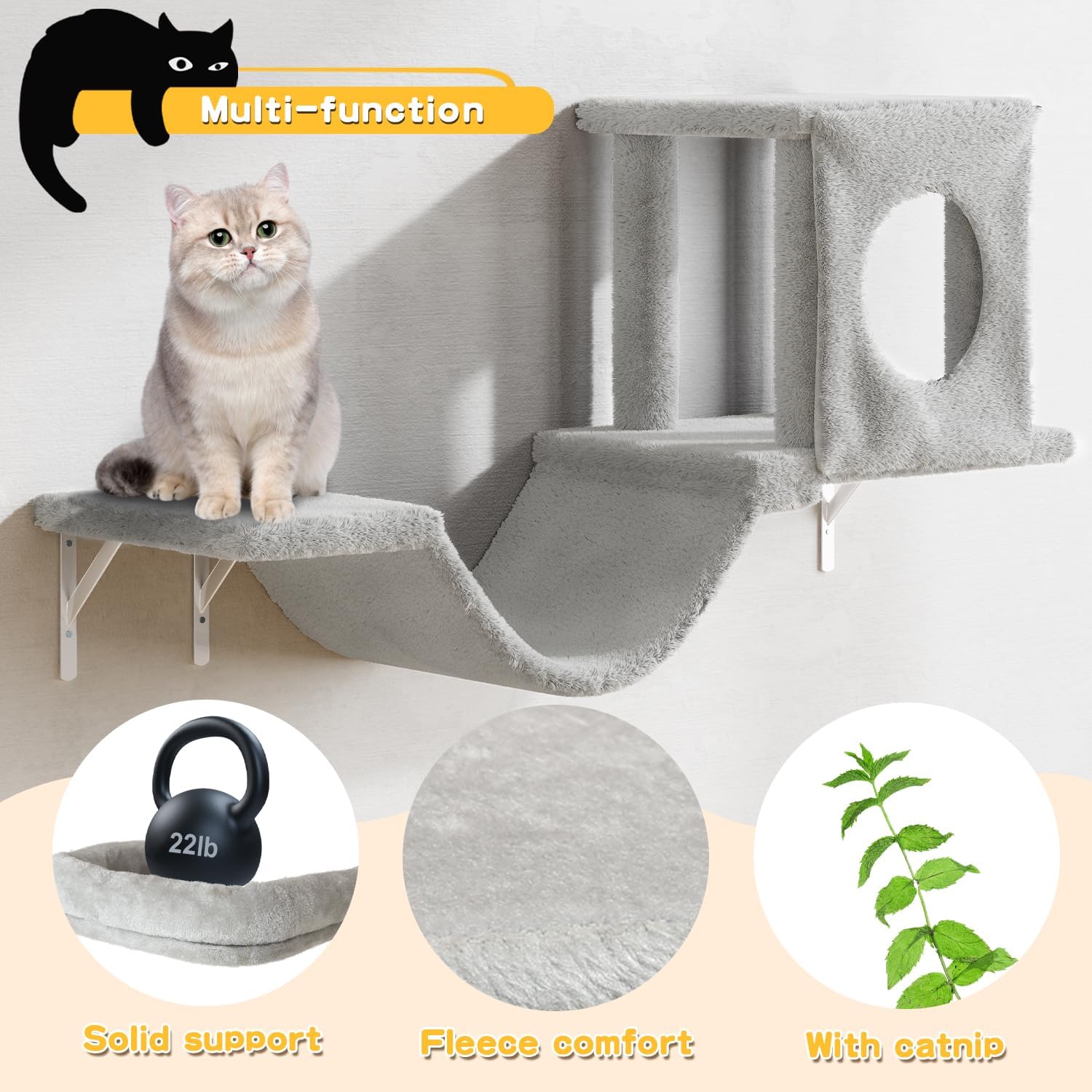 - SPACE SAVING, VERTICAL VISION - The hanging multi-functional cat climbing frame saves floor space, and the multi-level design increases your cat's mobility and allows them to release their natural instincts. This wall climbing set provides your cat with a safe place to rest and a way to burn off energy, which is good for both body and mind.