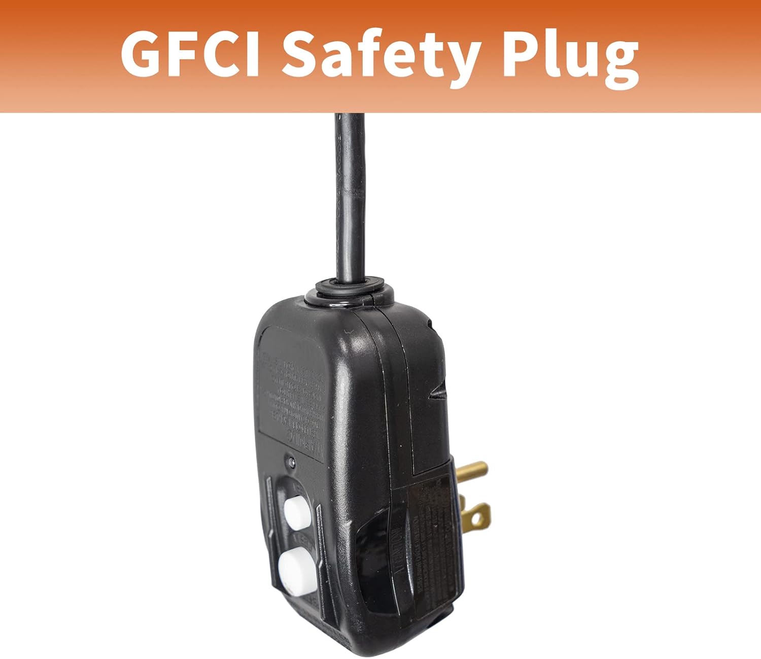 - 【Great Outdoor】: Completely sealed and permanently lubricated ball bearings IP44 1/12HP durable motor with thermal overload protection for wet locations, composed with 9ft power cord with GFCI plug. The moisture resistant design are perfect for environments with high humidity, dust, debris even raining