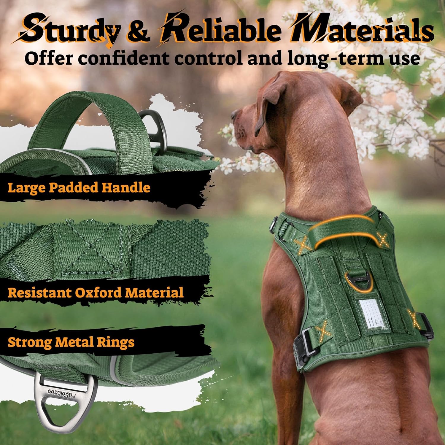 rabbitgoo Dog Harness Medium Sized No Pull, Tactical Service Pet Vest with Molle and Control Handle, Adjustable and Reflective Military Harness for Easy Walking and Training, Green, M