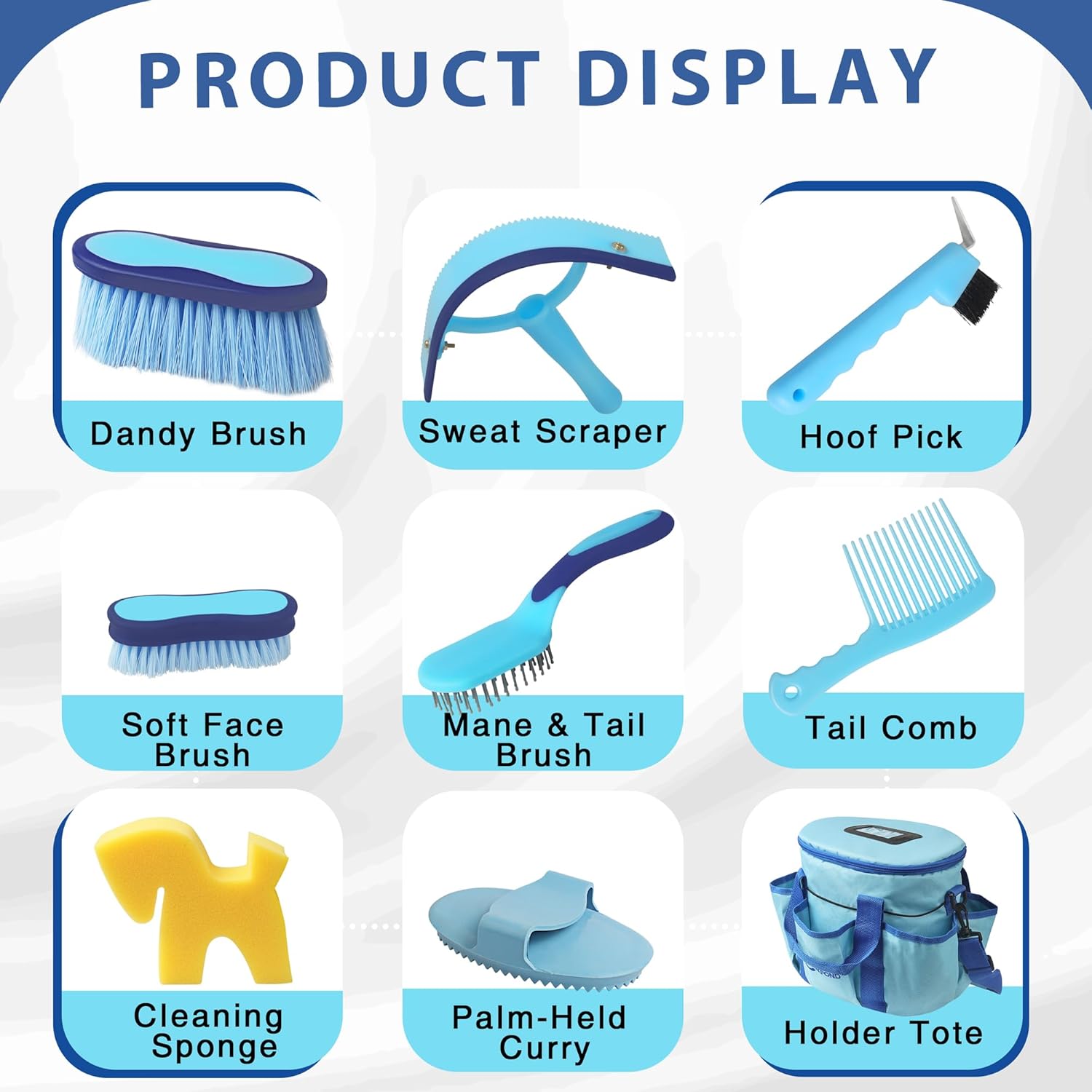 - Stylish Blue Design: Stand out in the stable with the stylish blue color of this grooming kit. Not only is it functional, but it also adds a touch of elegance to your horse grooming routine. It's the perfect choice for both casual and professional horse owners.