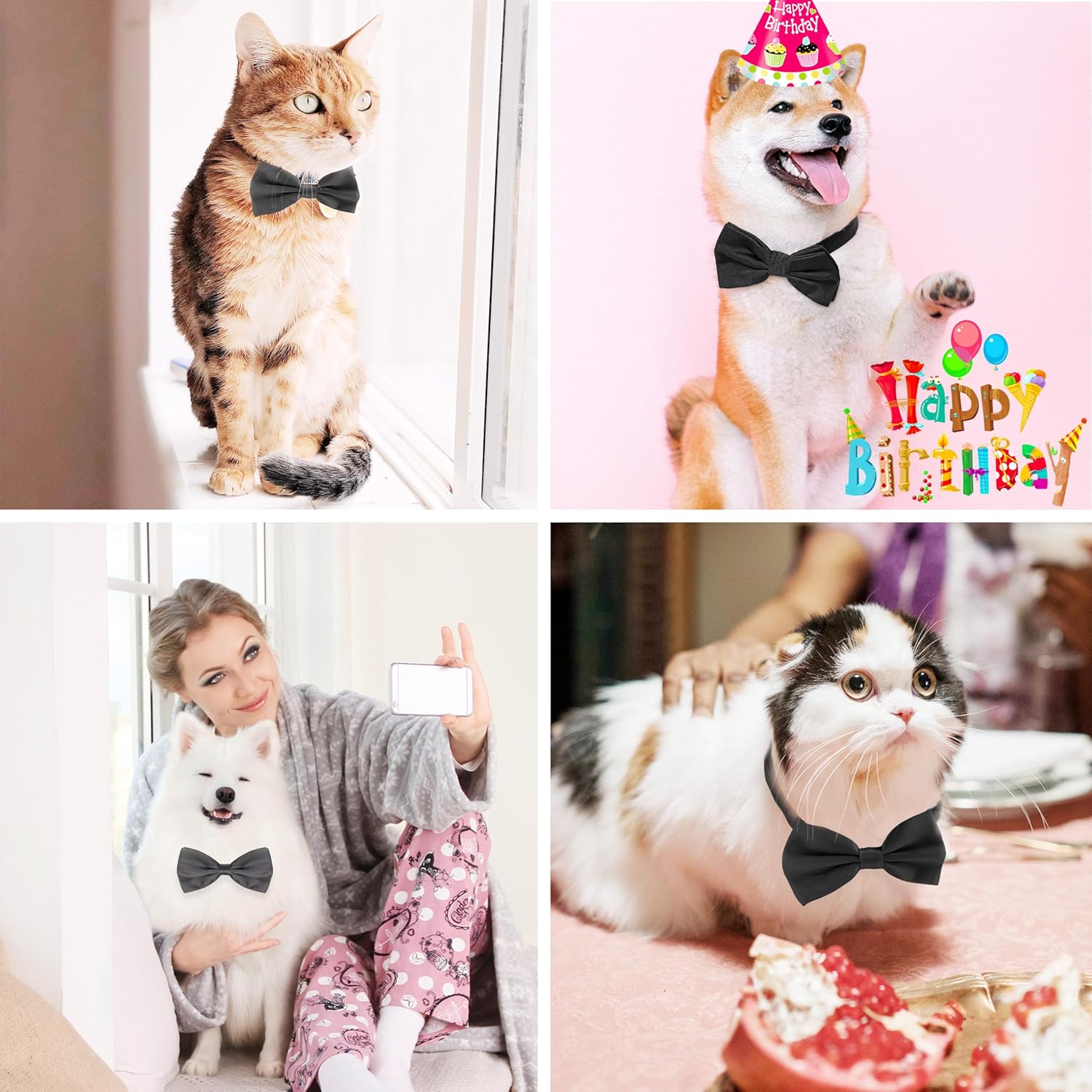 - ELEGANT & ENERGETIC -- classic dog bowties for large dogs fits dogs/cats of different breeds. Perfect choice for either wedding, photography, parties, birthday, valentines, celebration, proms, Halloween, Christmas graduation pets grooming, or daily wear. Add a touch of elegant for our pet.