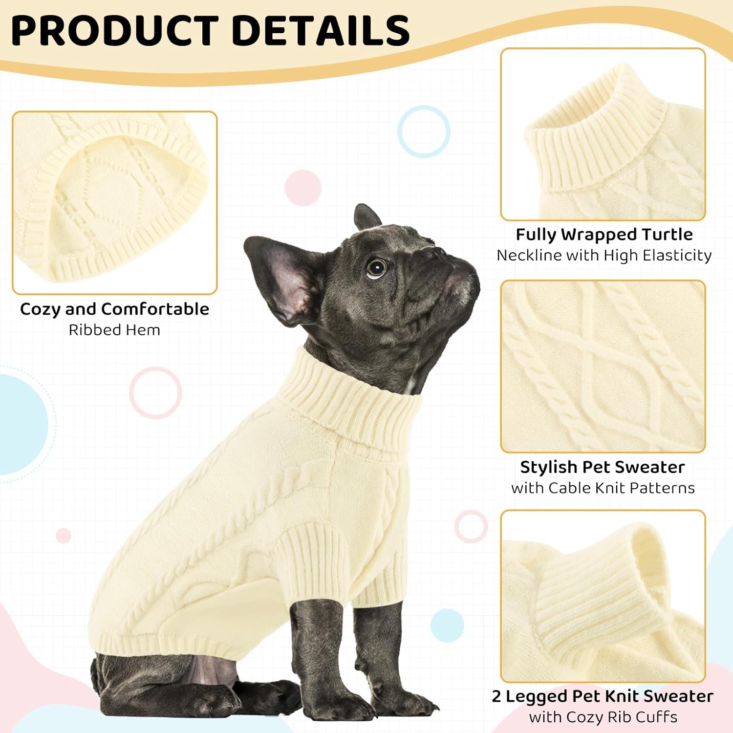 - THICK & WARM KNIT SWEATER: The dog's turtleneck pullover sweater is made of high density acrylic yarn that is comfortable, soft, warm and easy to care. The cable knit sweater is the cute winter clothes for your dog.