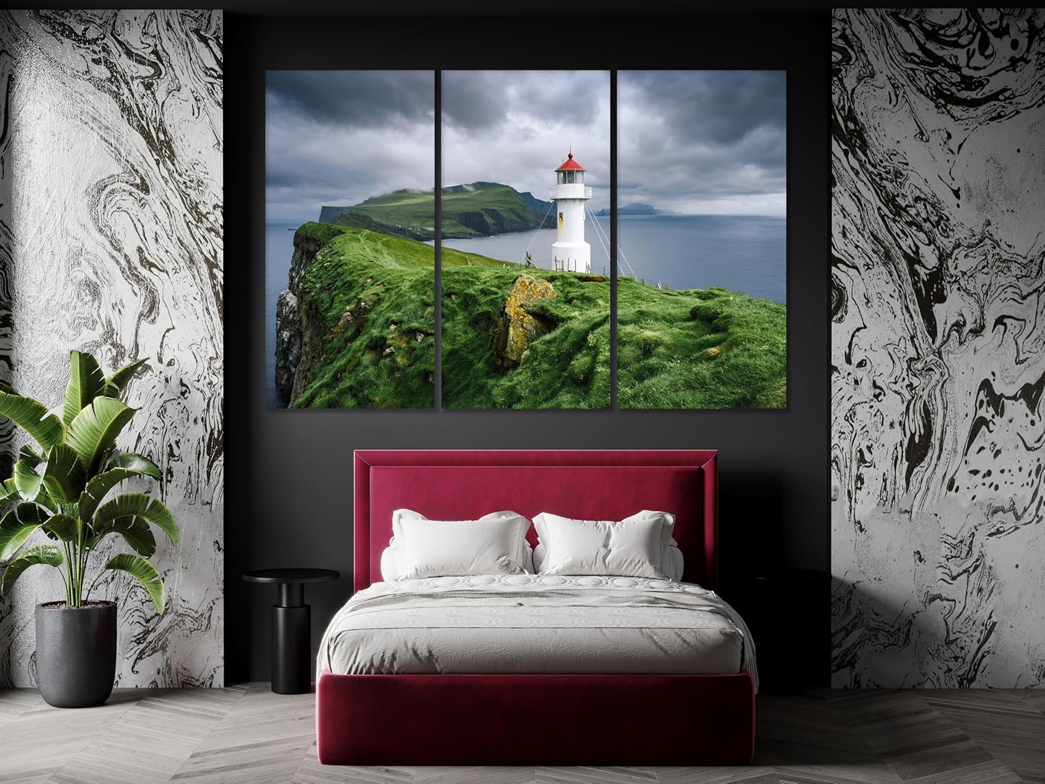 Nature Wall Art Prints - Ocean Forest Mountain Lake Canvas Landscapes - Small to Extra Large Living Room Bedroom Kitchen Bathroom Décor (Stormy Sky Lighthouse, 16L" x 24W")