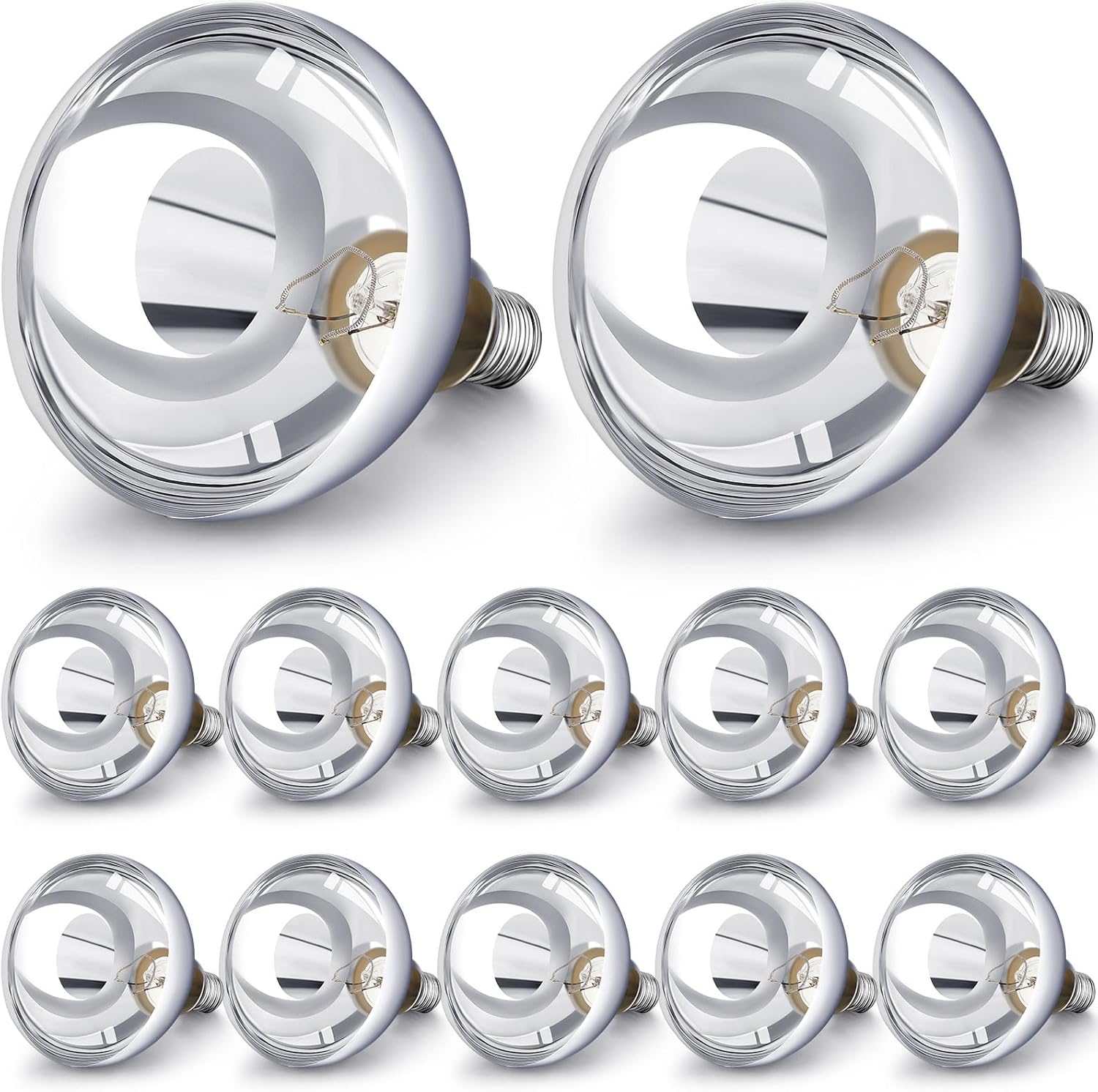 VIHOSE 12 Pack 250 Watt Heat Lamp 120v R40 Heat Lamp Bulbs Glass Incandescent Light Bulbs Incandescent Heating Lightbulbs for Reptiles Chicks Food Puppies Bathroom, Use E26 Base (Silver)