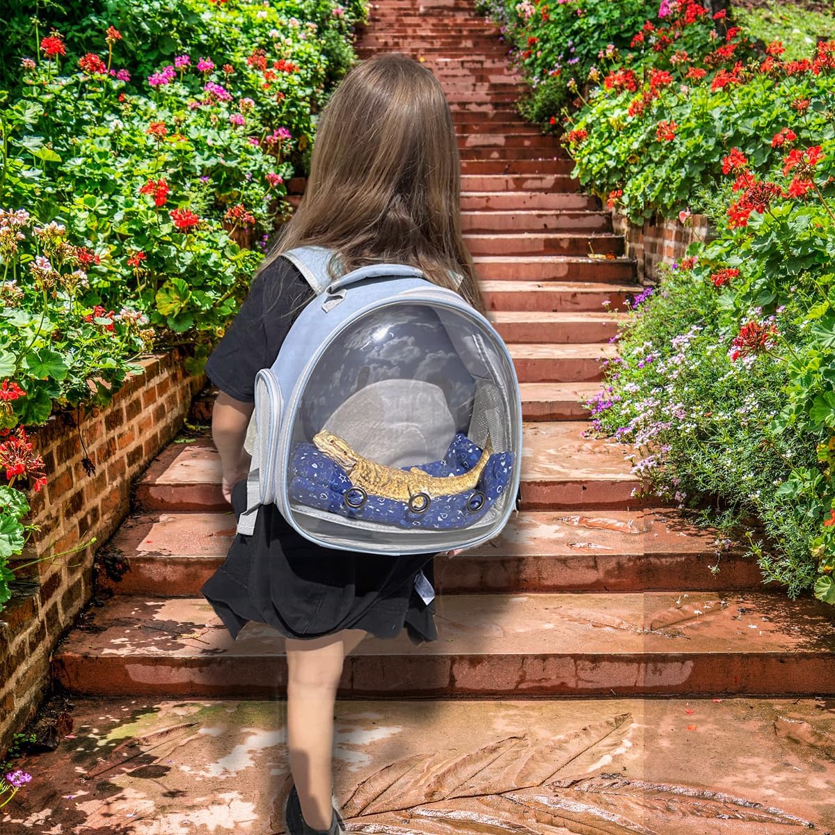 Bearded Dragon Backpack Carrier,Reptile Portable Backpack Carrier,Space Capsule Clear Bubble Window Travel Backpack for Lizard Travel,Guinea Pig,Rabbit(Blue, Backpack)