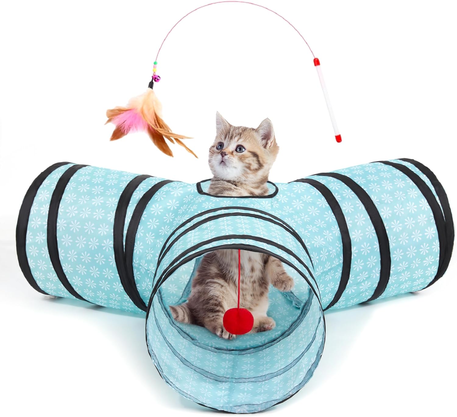 - Best Ways to Play: Our cat tunnel with 3 spacious tunnels, peephole & ball toy, this popular cat toy gives your kitty more ways to have fun. Provides hours of exercise & self-amusement.