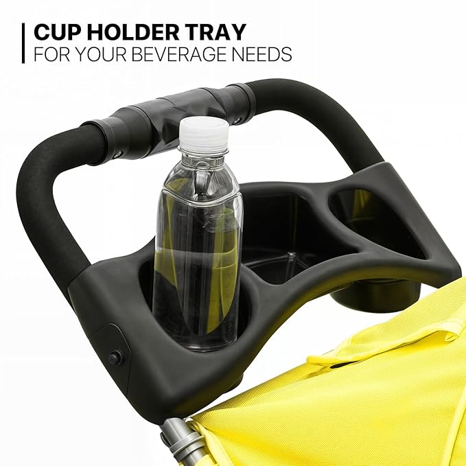 MoNiBloom Foldable Pet Stroller with Waterproof Cover, 3-Wheels Dog Strolling Cart for Small/Medium Dogs and Cats with Storage Basket and Cup Holder, Breathable and Visible Mesh for All-Season, Yellow