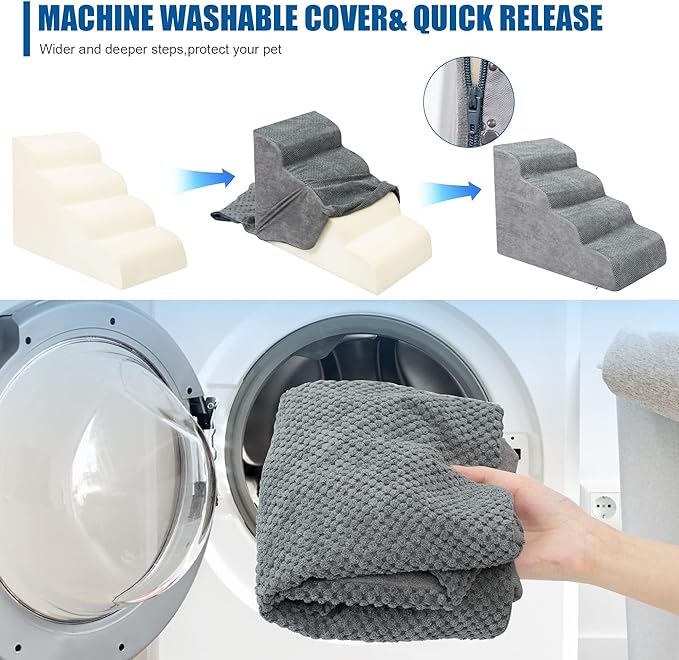 - Easy to Install and Clean: This pet step is 29 inches long, 16 inches wide and 20 inches high. It can be assembled and disassembled through simple steps. It is easy to clean. You can wash the removed cover by machine to keep the pet step clean and tidy