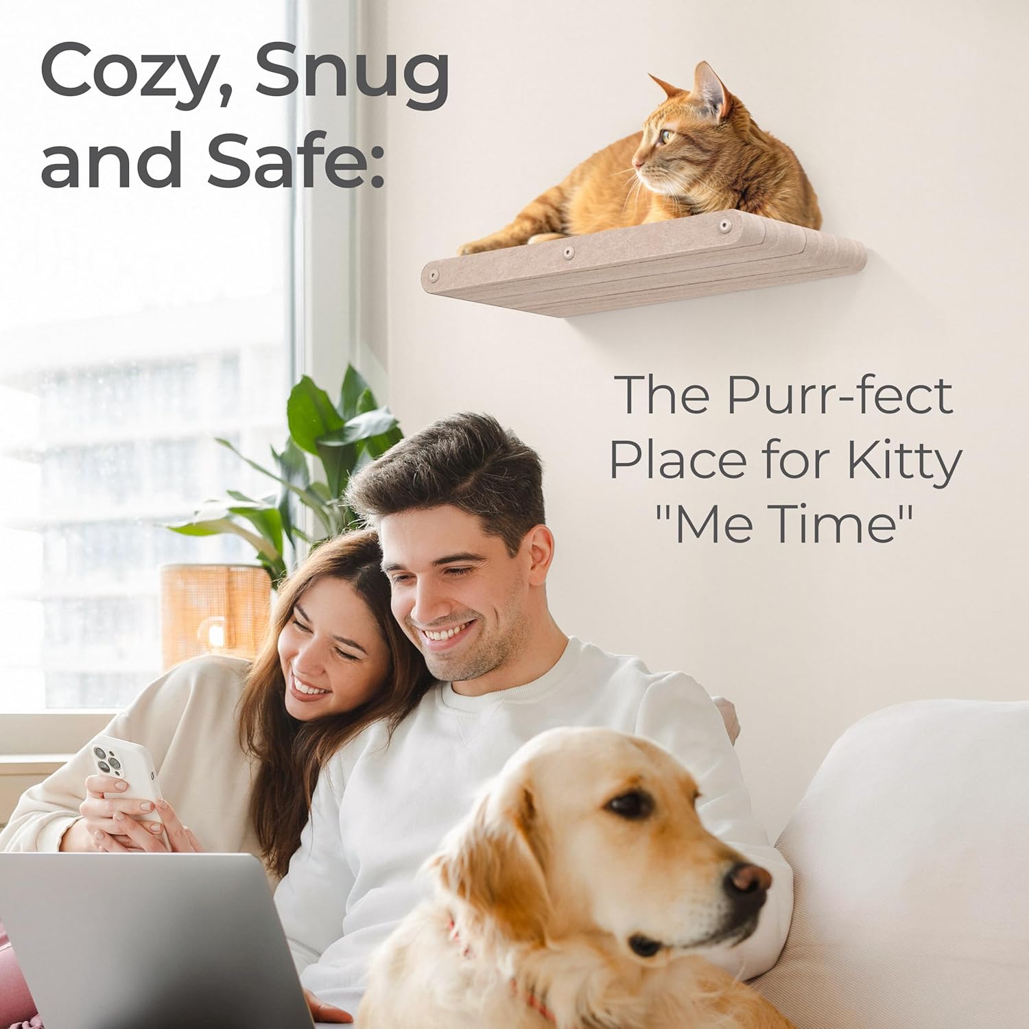 - Paws and Shine: Each cat shelf has a weather-proof design meaning you can expand your cat’s adventures outdoors, perfect for catios and secure areas. With our long cat wall shelf, your cat can scratch, snuggle and snooze anywhere.