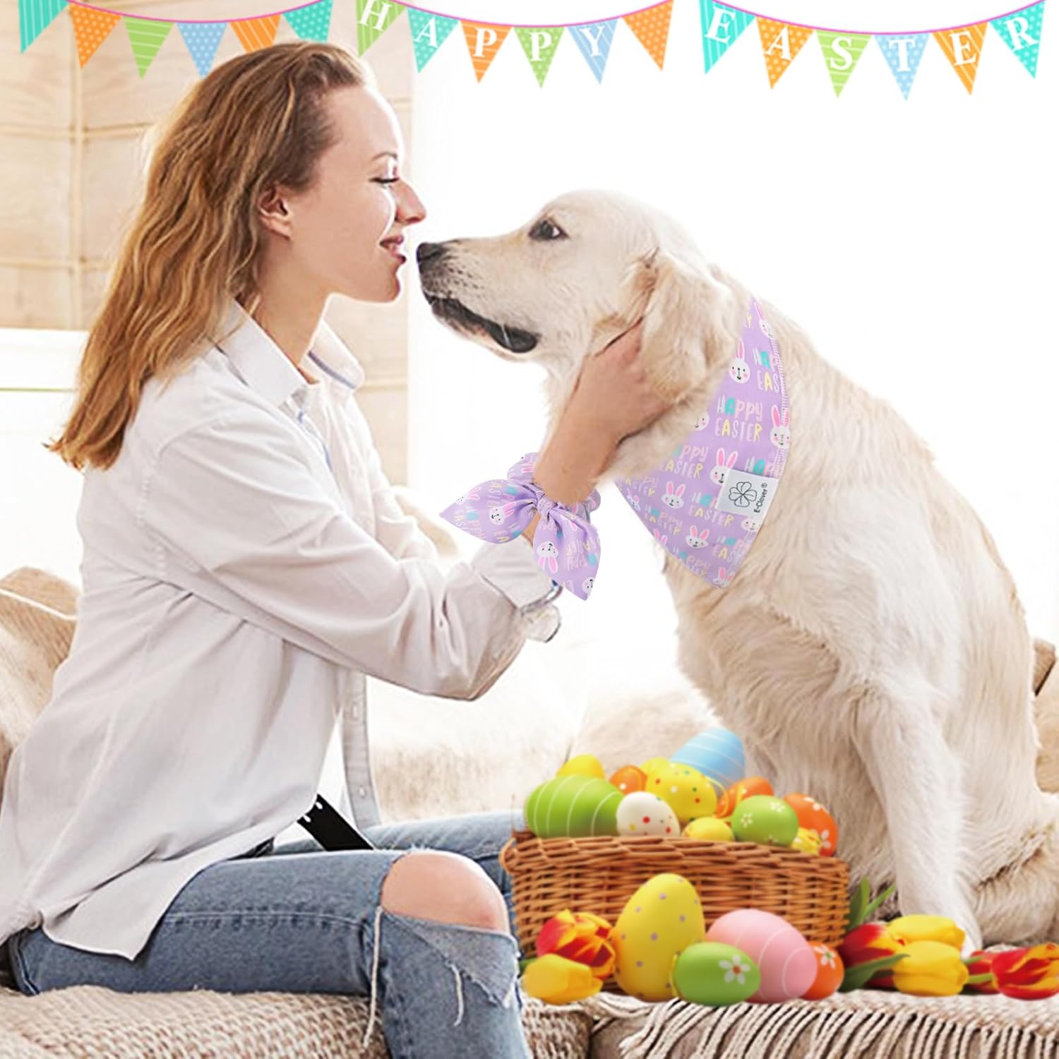 - Ideal Dog Mom Gifts for Women- Cute easter dog bandanas girl is a pretty gift for dog owner/lovers on Easter Day, Mother's Day, Birthday party, etc.