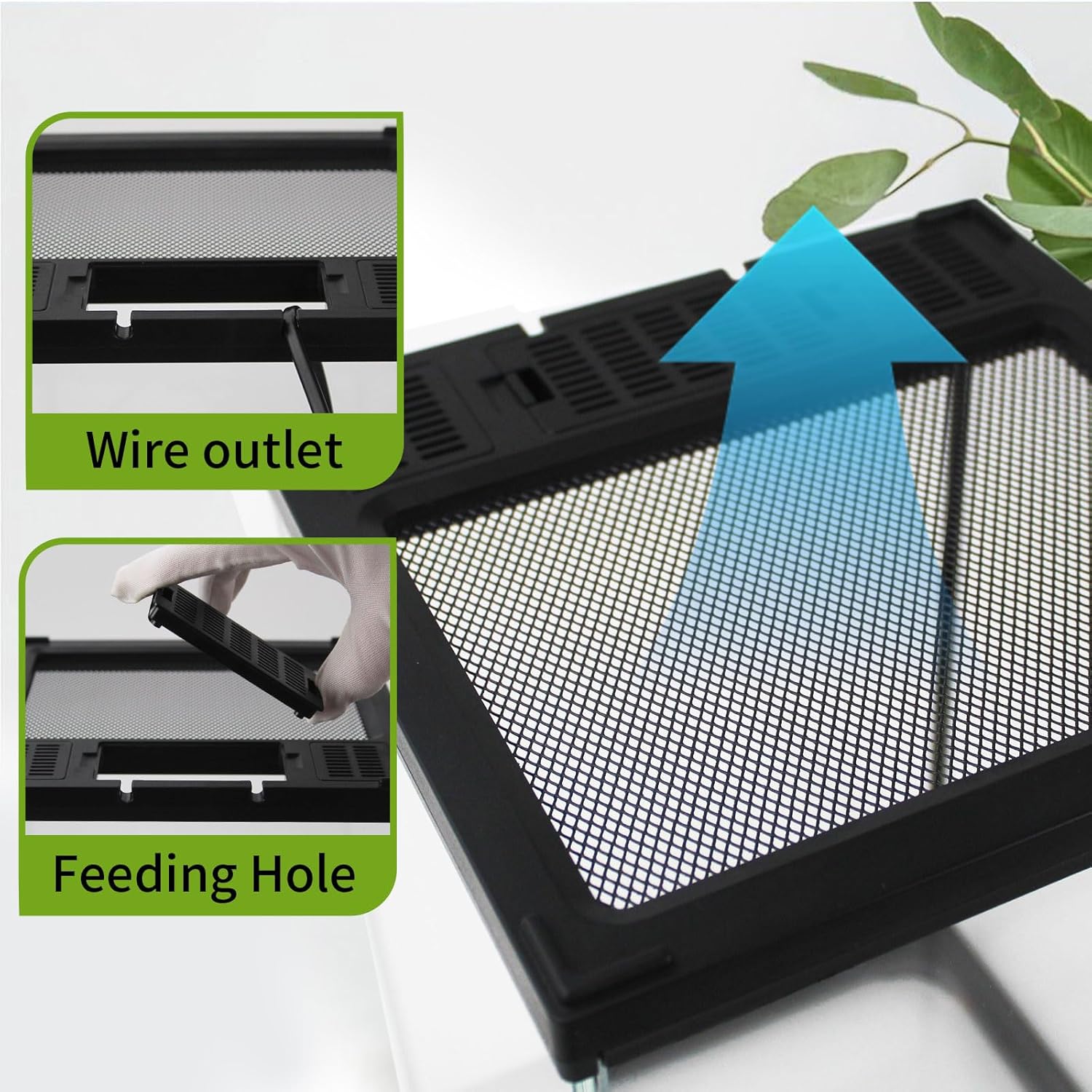 - 【Metal Screen Top】: The top of our terrarium tank is a removable metal mesh so your pet can enjoy optimal airflow, UVB and IR penetration, and dome lighting. The electrical outlet on the top door is for your convenience.