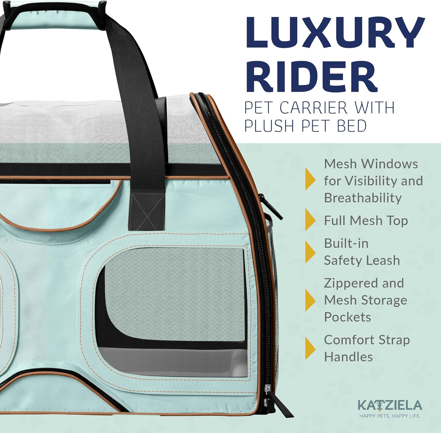 - LUXURY RIDER FEATURES – The rolling pet carrier, airline compliant Luxury Rider, offers a spacious, open feel with mesh top and side windows for ultimate visibility and breathability. Perfect for pets who love to see their surroundings and feel like a part of the action.