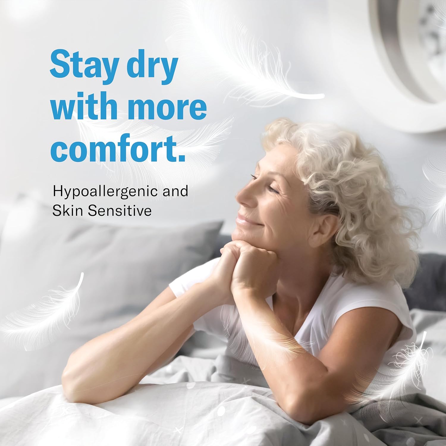 - LEAKLOCK TECHNOLOGY — Enjoy 5 layers of comfortable protection: (1) Non-woven top sheet for a soft feeling on skin. (2) Absorbent, soft tissue for ultimate comfort. (3) Polymer beads for maximum absorbency. (4) Soft fluff core provides added comfort, creating a quiet and quality sleep. (5) Waterproof barrier layer for a leak-free and odor-free night.