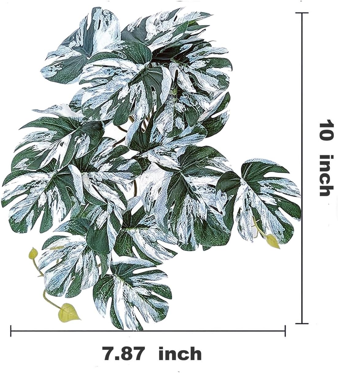 Reptile Plants for Terrarium, Amphibian Habitat Decor Artificial Hanging Plants with Suction Cup, Artificial Plants for Gecko Chameleon Snake Tortoise Tank Accessories. 2-Pack (Monstera)