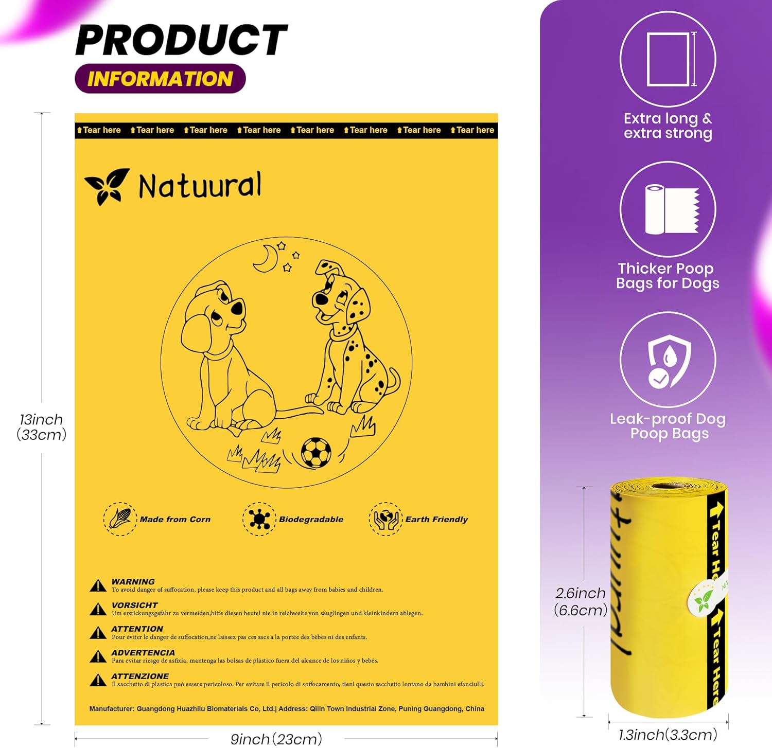 Dog Poop Bags-150 Counts with Holder (10 Rolls), Biodegradable Poop Bags, Eco-friendly and Easy to Open, Thick Dog Waste Bags (Yellow)