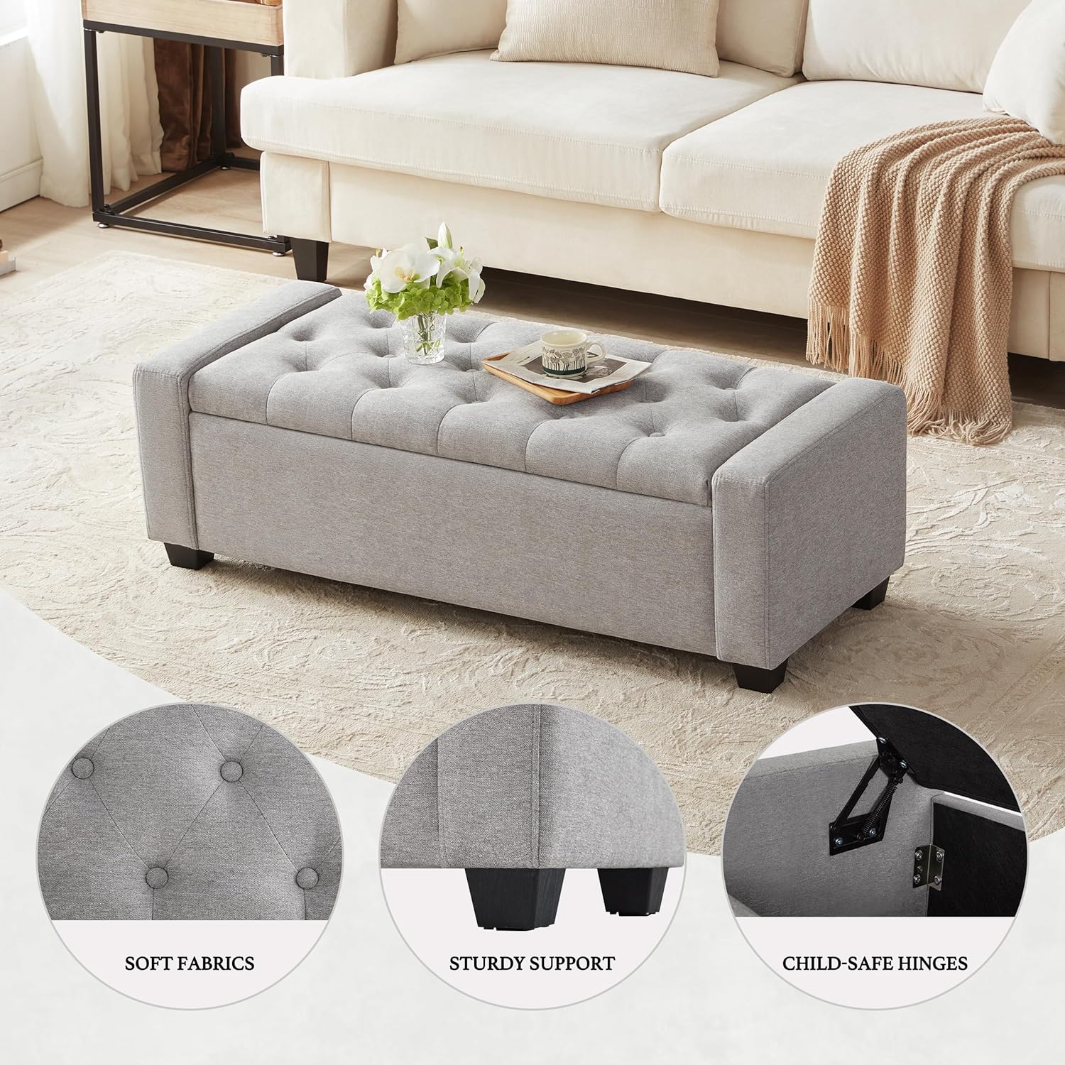 48" Ottoman with Storage, Storage Ottoman Bench with Safety Hinge, Upholstered Entryway Bench with Seating for Bedroom, Living Room, Holds up to 330 lb(Light Gray)
