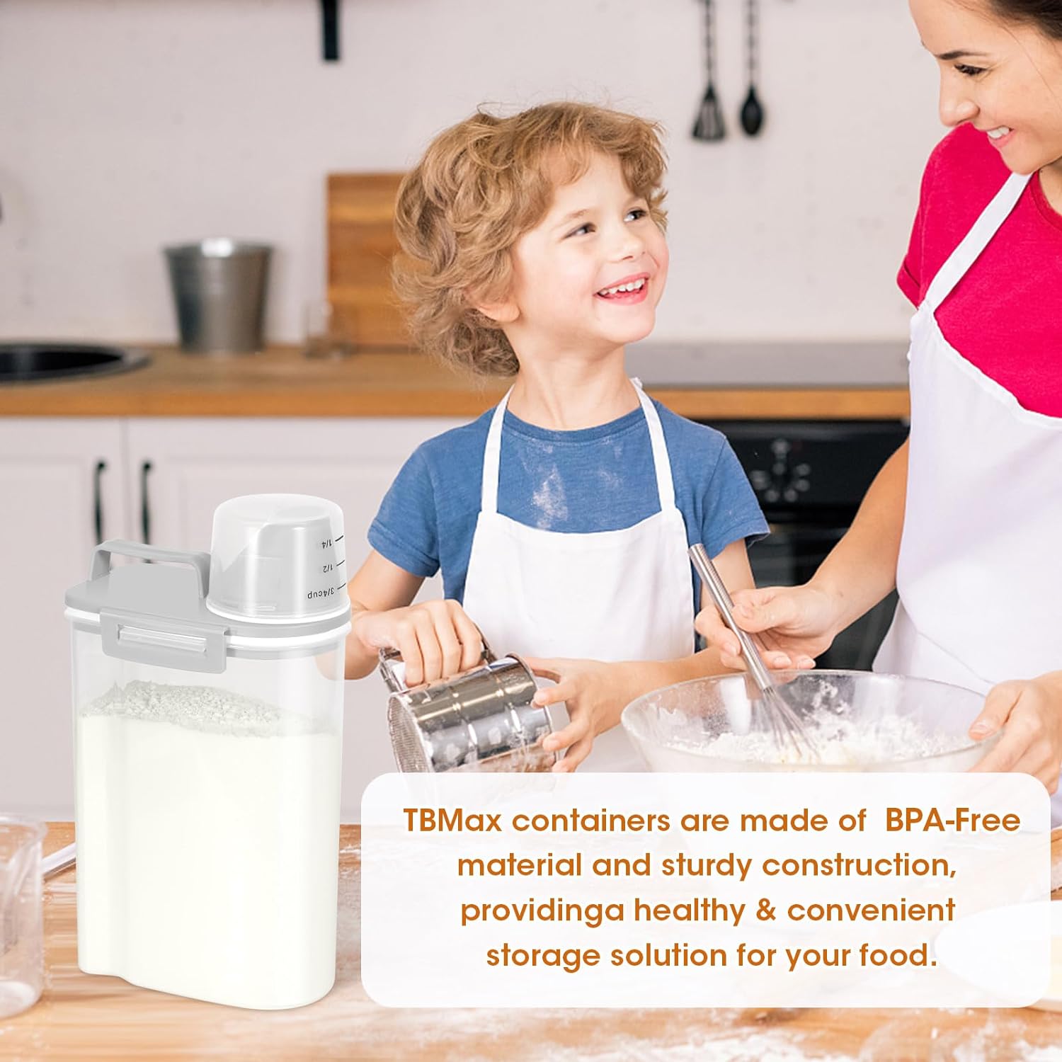 TBMax Rice Storage container 4 Lbs, Small Rice Dispenser with Measuring Cup, Grey Cereal Containers Flour Bin, Kitchen Food Storage Container and Pantry Organizers, Pet Dog Cat Food Dispenser