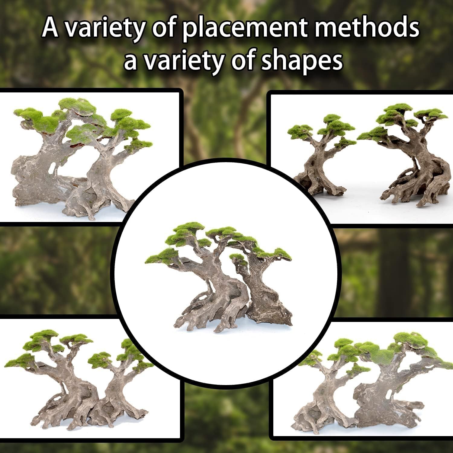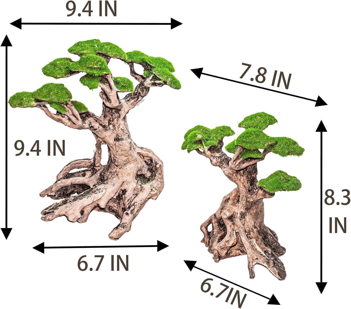 Novelsite Fish Tank Decorations - Large Bonsai Trees with Faux Moss- Aquarium Rocks Aquascaping- Made of Sandstone 17" x 8.6" x 5" Enhance Aquatic Landscape with Realistic Natural Look