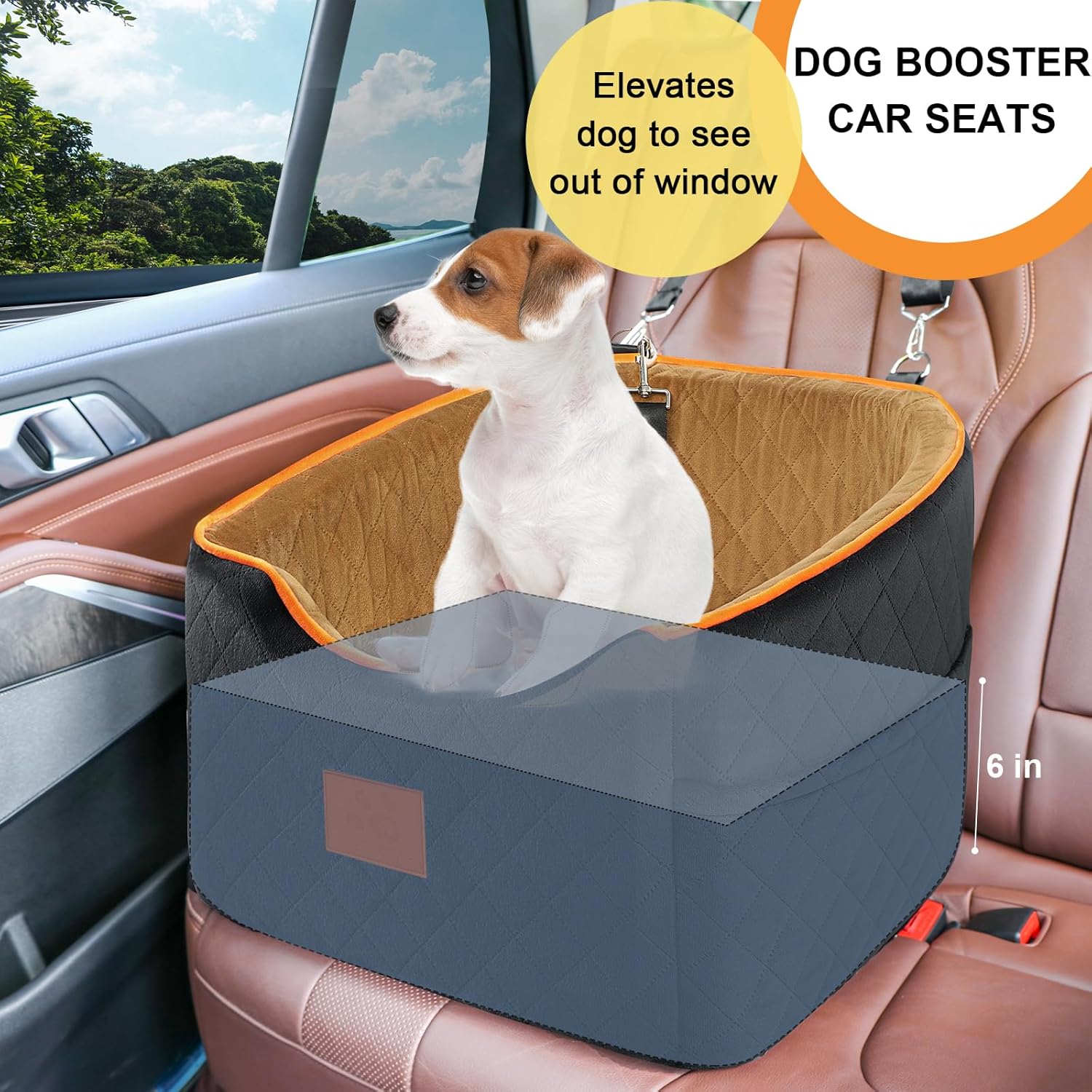 - Perfect for Long Trips: The elevated design of this car seat allows your pet to have a better view out the window, which can help ease their anxiety during car rides. It comes with an adjustable leash that can be attached to your dog's harness to ensure their safety. The interior height of the seat is 6 inches, allowing most dogs to enjoy the scenery outside without obstructing your rearview mirror. This dog booster seat is an ideal accessory for long trips with your furry friend.
