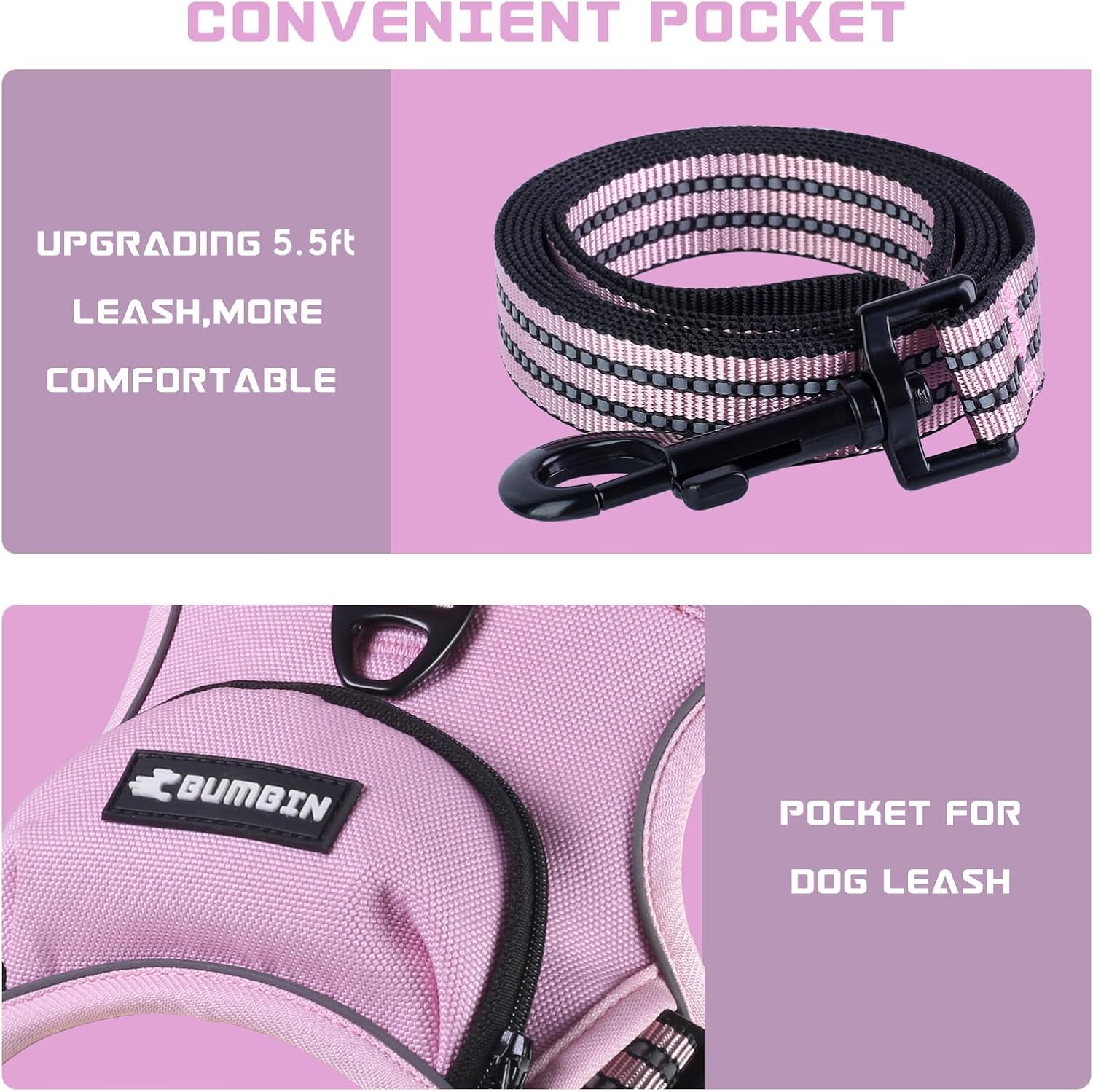 - 🐾COMFTY & SAFE DESIGN: Be the best partner of your pets.🐾 The Bumbin dog harness helps you walk, run and play with your dog together. The arc of the harness back is extended to ensure comfort without scratching the dog’s skin.