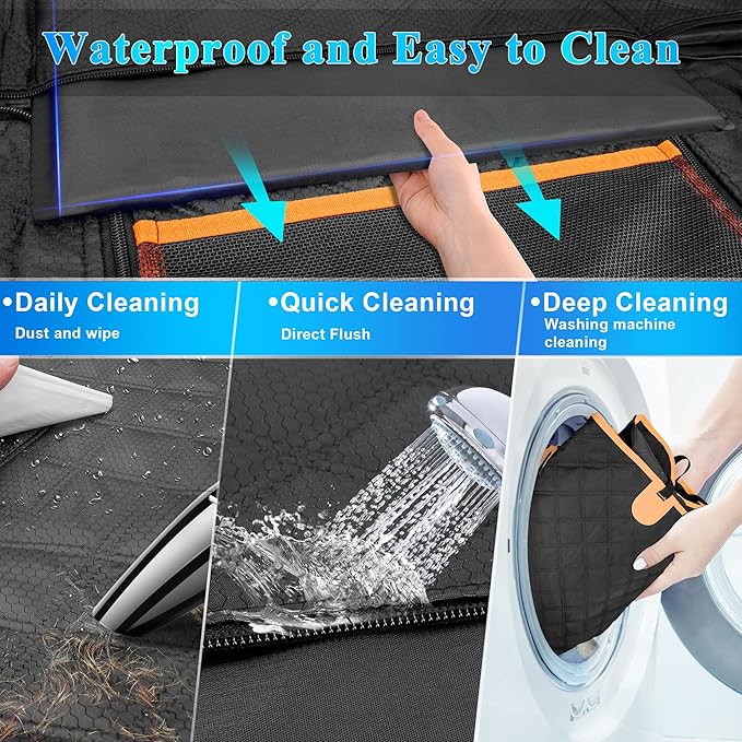 - [Easy Installation and Cleaning]- Simple and easy to install, mountaineering buckle and safety buckle installation is effortless. Daily cleaning only need to use a vacuum cleaner or wet step for hair and liquid debris fast cleaning, you can also remove the hard base plate to put the dog pad into the washing machine for deep cleaning, installation and cleaning can greatly save labor, material and financial resources.
