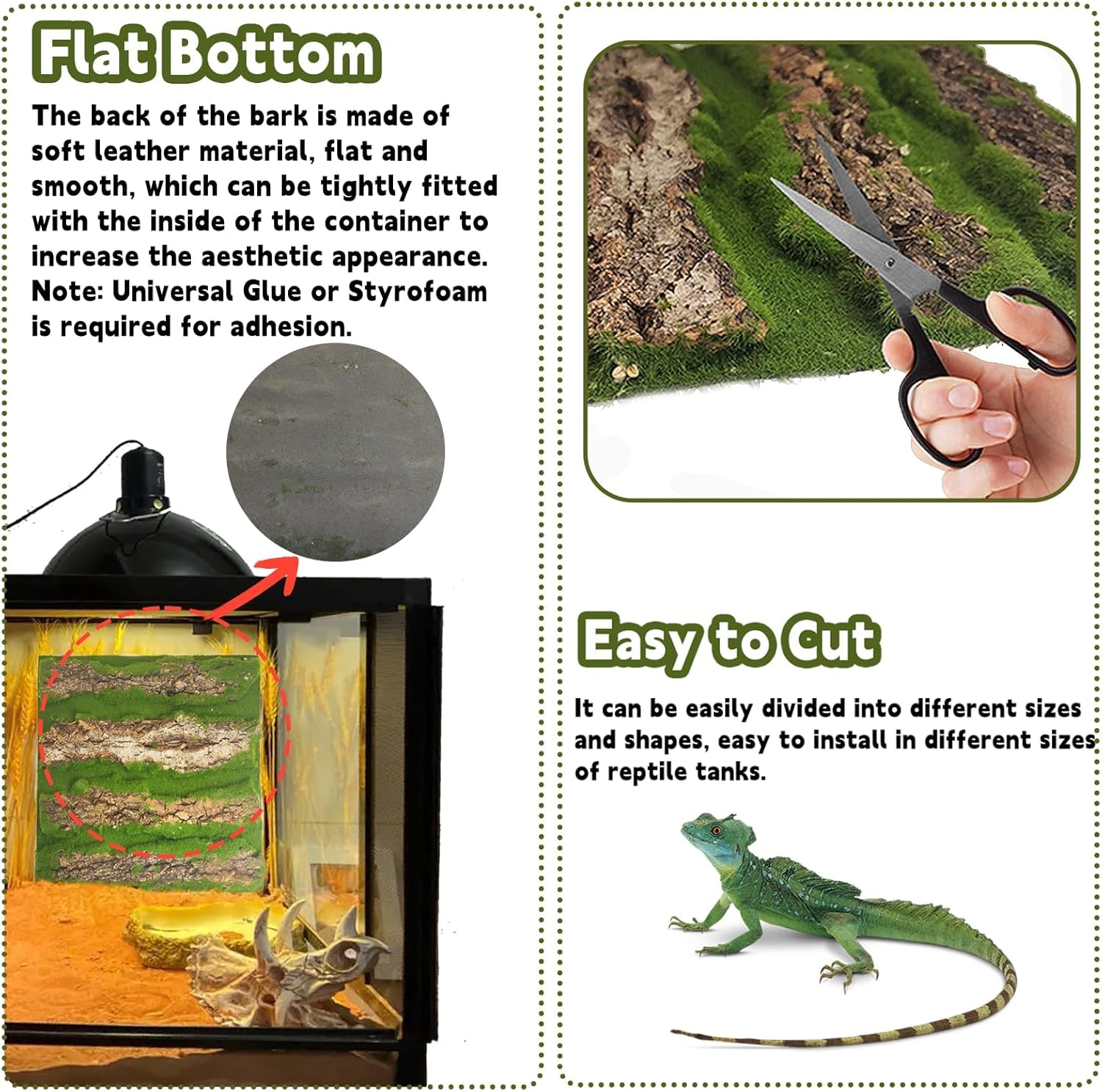 - 【Natural Materials】: Our cork bark tile is crafted from natural bark and adorned with artificial moss, providing a safe and authentic habitat for reptiles. Just like living in the wild so they can live and play freely.