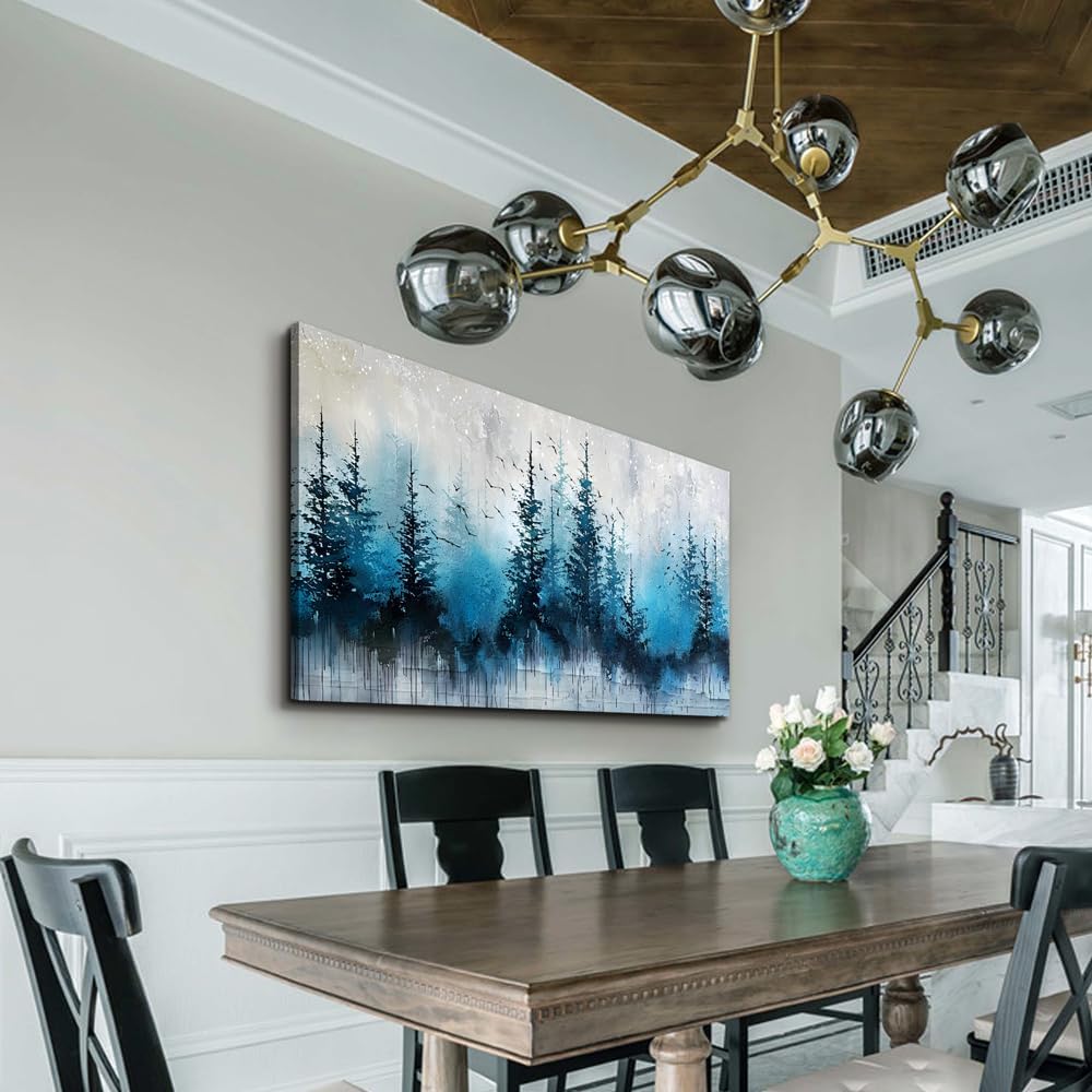 hyidecorart Large Wall Art For Living Room Framed Wall Decor For Office Bedroom Decoration Scenery Abstract Wall Painting Misty Forest Trees Pictures Artwork Canvas Prints Home Room Decor 48"X 24"