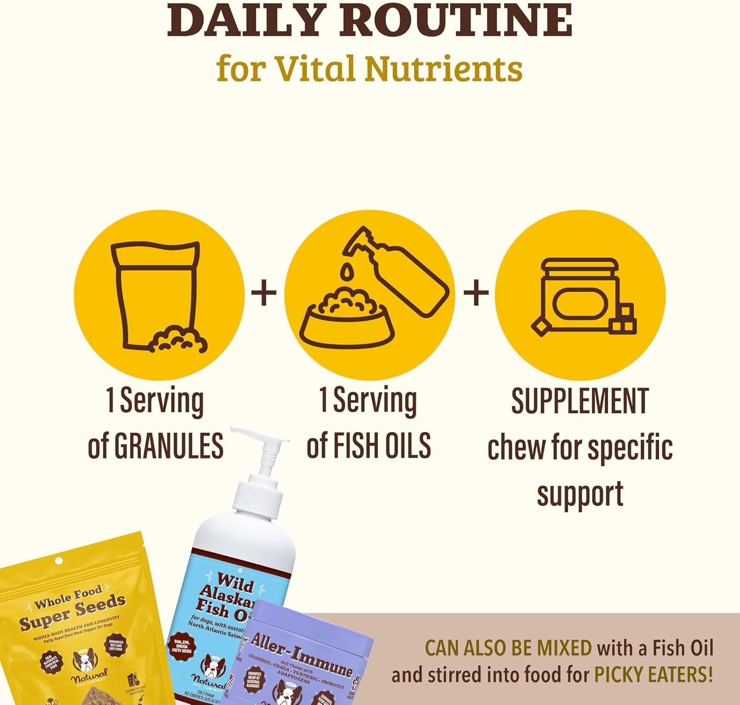 - OMEGA BOOST FOR COAT & SKIN: Turn ordinary meals into extraordinary health benefits with our dog food topper. Rich in Omega 3, 6, and 9 fatty acids, this formula is your dog’s key to a shinier coat, healthier skin, and a fortified immune system. Don’t settle for less give your pet the best chance at a vibrant, healthy life with a daily dose of this nutrient-dense dog supplement.