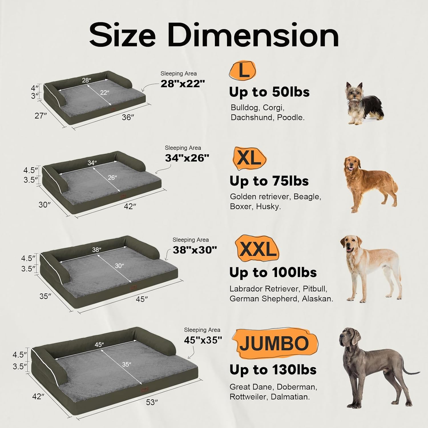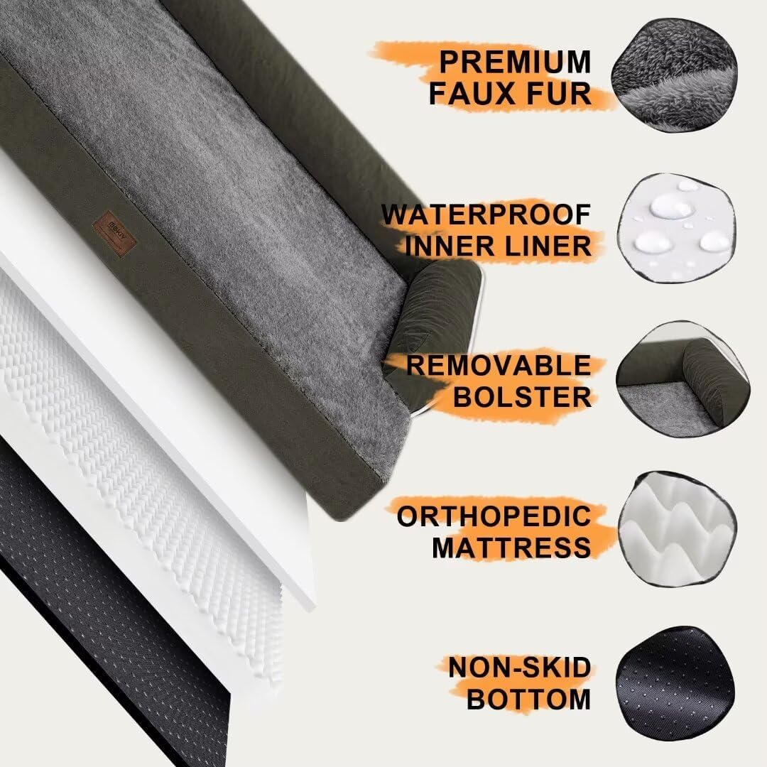 Large Dog Bed Orthopedic Washable - Removable Waterproof Cover Bed Pet - Large Big Dogs - Memory Foam - Couch Sofa with Removable Bolster - Dark Green Dog Bed