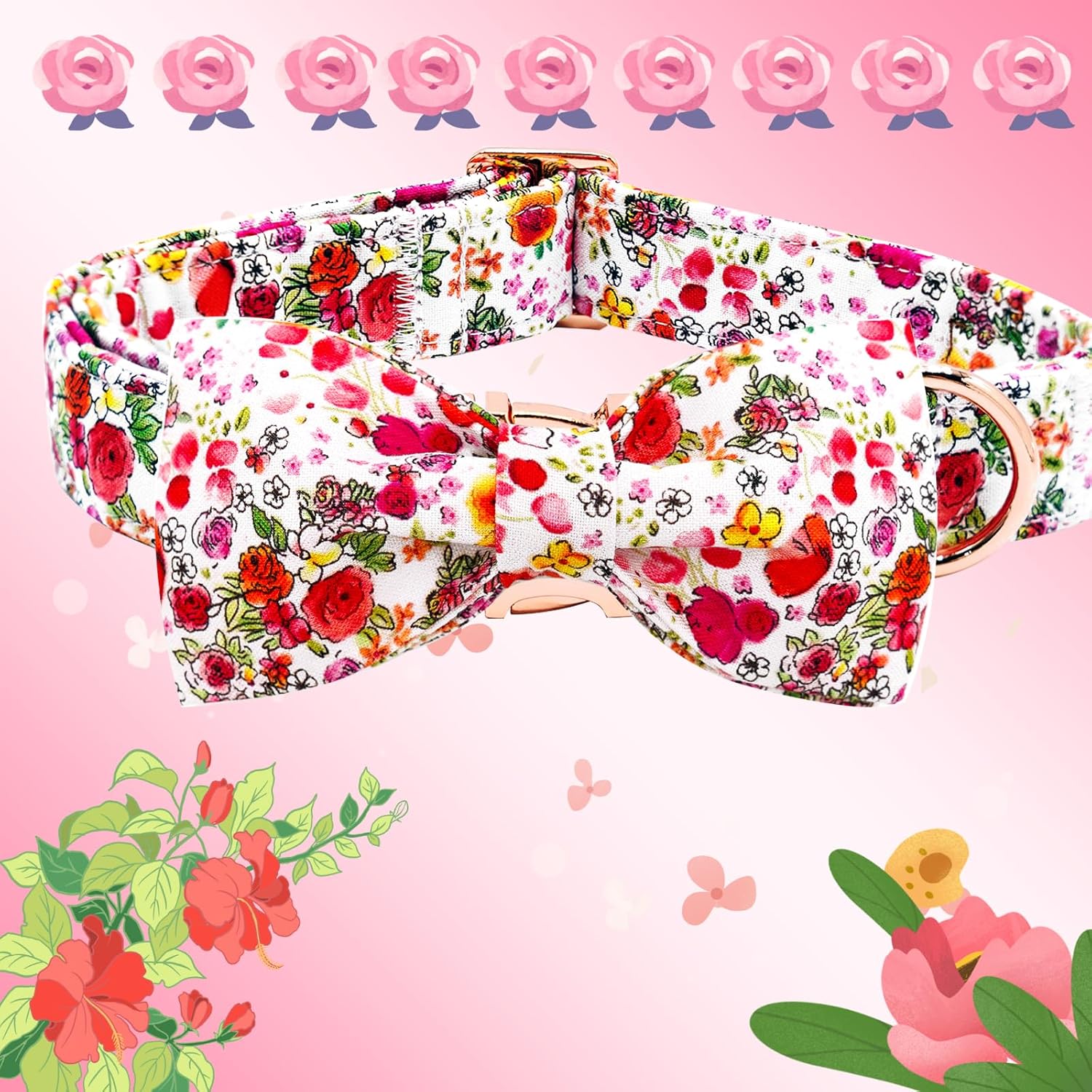 Elegant little tail Dog Collar, Pink Rose Print Pet Collar Summer Dog Collar Durable Metal Buckle Dog Collars Cotton Pet Adjustable Dog Collars for X-Small Dogs