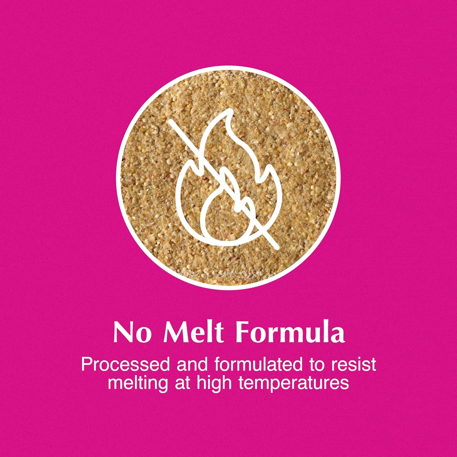 - YEAR-ROUND FEEDING, no melt suet has a soft dough texture and stays solid up to 100°F, making it perfect for warm-weather feeding without the mess