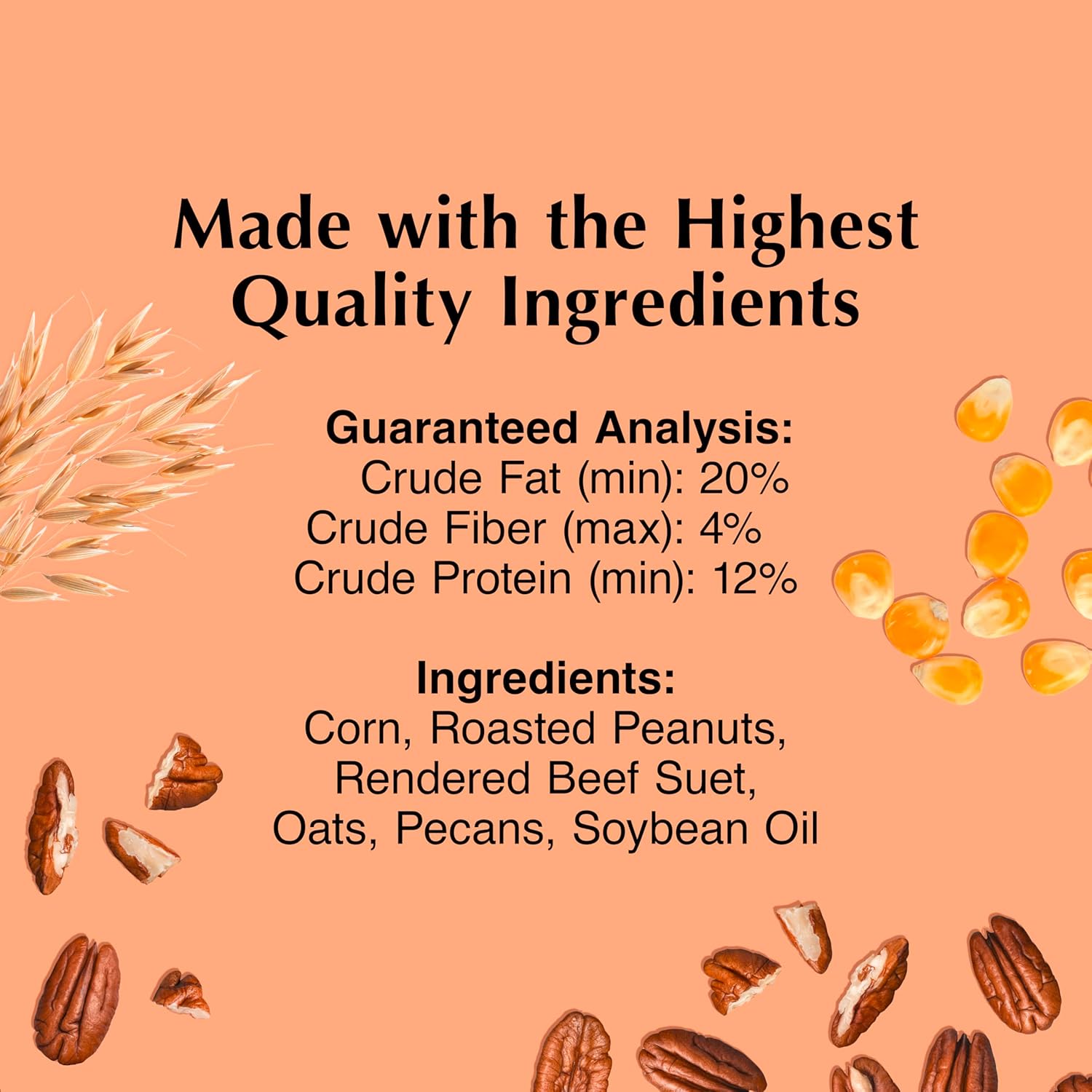 - ECONOMICAL AND EASY TO USE compared to traditional seeds; C&S Pecan Delight No Melt Suet Dough combined with a wire feeder offers a great value for today’s wild bird feeding customer