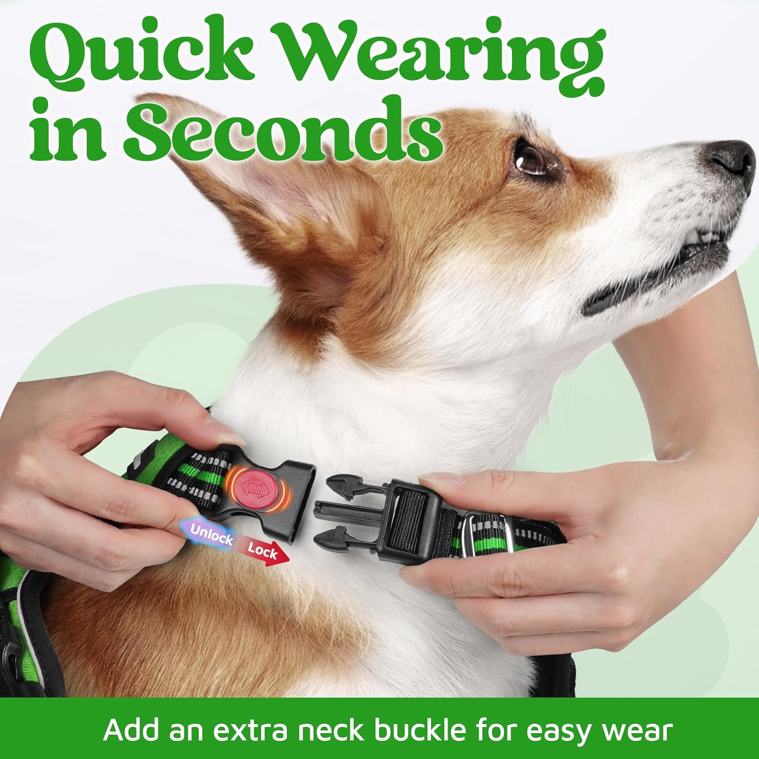 - Put on in Seconds: Featuring 3 buckles, this no-pull dog harness can be effortlessly put on and taken off. Say goodbye to the hassle of sliding a harness over your playful dog's head—experience a smooth and time-saving process