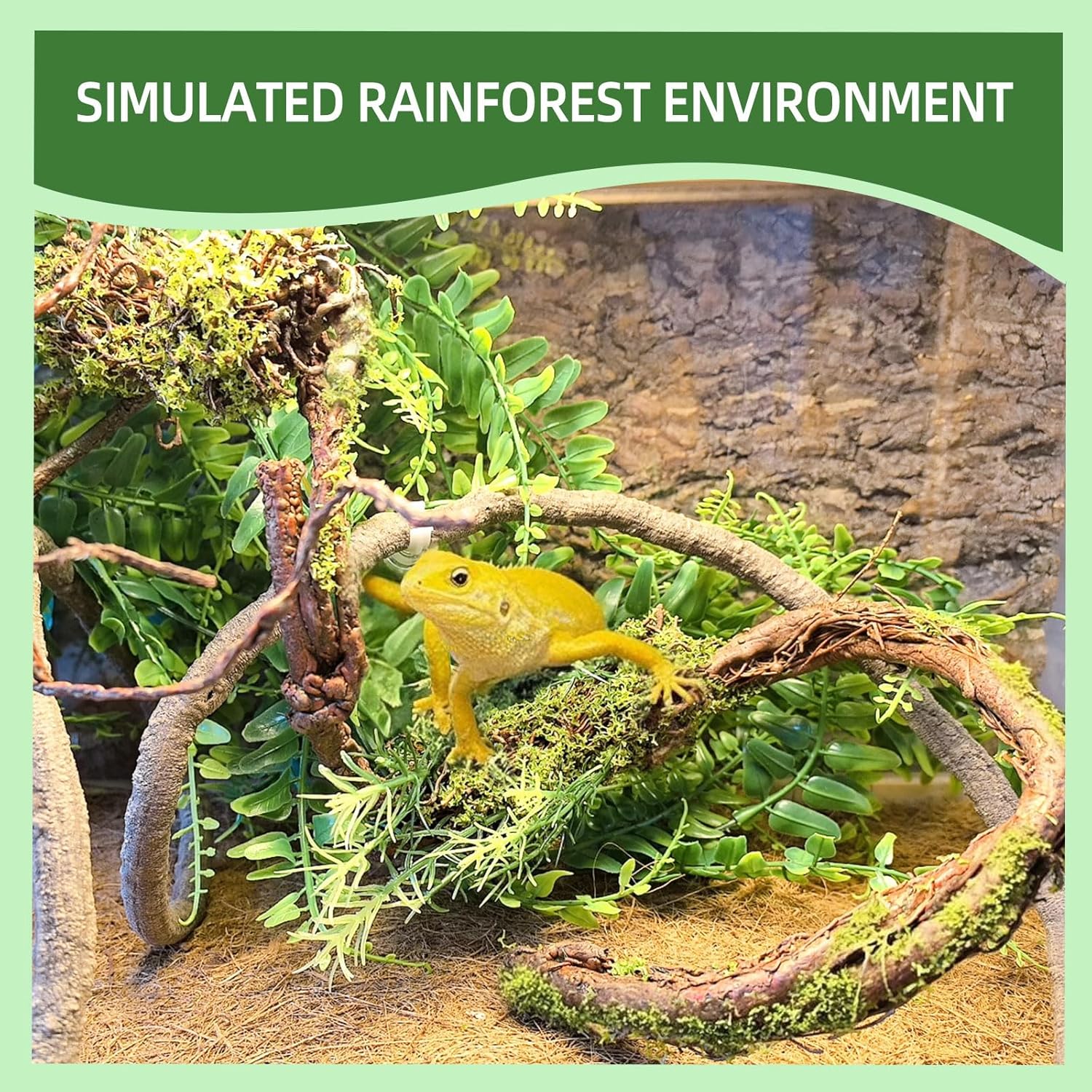 - 【Safe Material】 The reptile plants are made of non-toxic polyethylene plastic, man-made glass container plant decorations, safe and durable. The surface of the jungle vine is covered with artificial moss for a natural feel. The stems inside the vines are made of wire and can be bent into the shape you want. Please do not bend it quickly or the plastic shell will break.