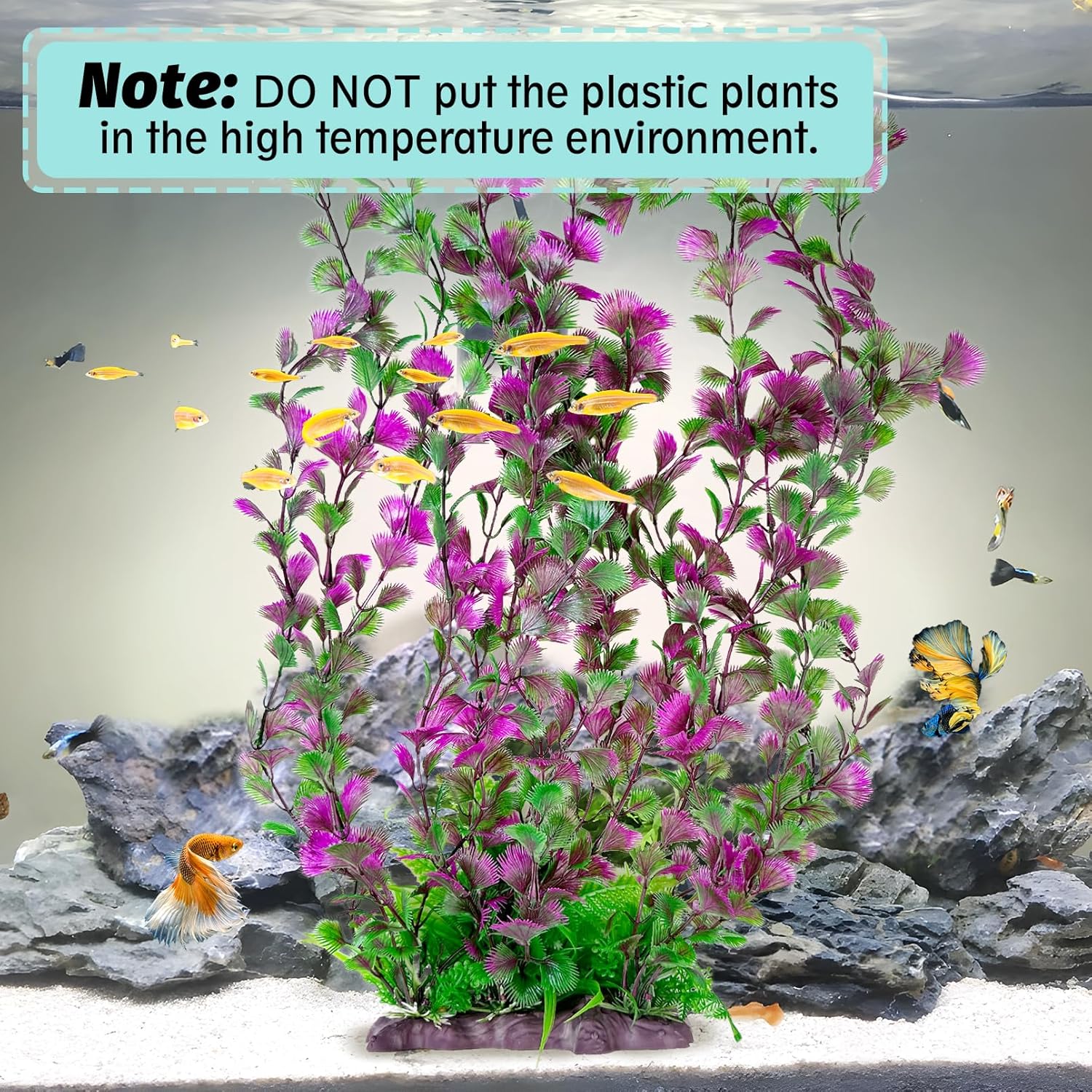- ARTIFICIAL AQUARIUM PLANTS ADD LIFE TO YOUR AQUARIUM : By combining different aquarium equipment and decorations, you can be as creative as you want and create a unique aquarium landscape that fish tank plant plastic adds a touch of joy and vitality to your fish tank. The aquarium decor plastic plants fits most aquariums, such as 10 gallon, 20 gallon, 30 gallon or larger aquariums. NOTE: Tall artificial fish tank plants may be crushed and deformed during packaging, place in warm water at 104 - 140 degrees Fahrenheit to return to its original shape