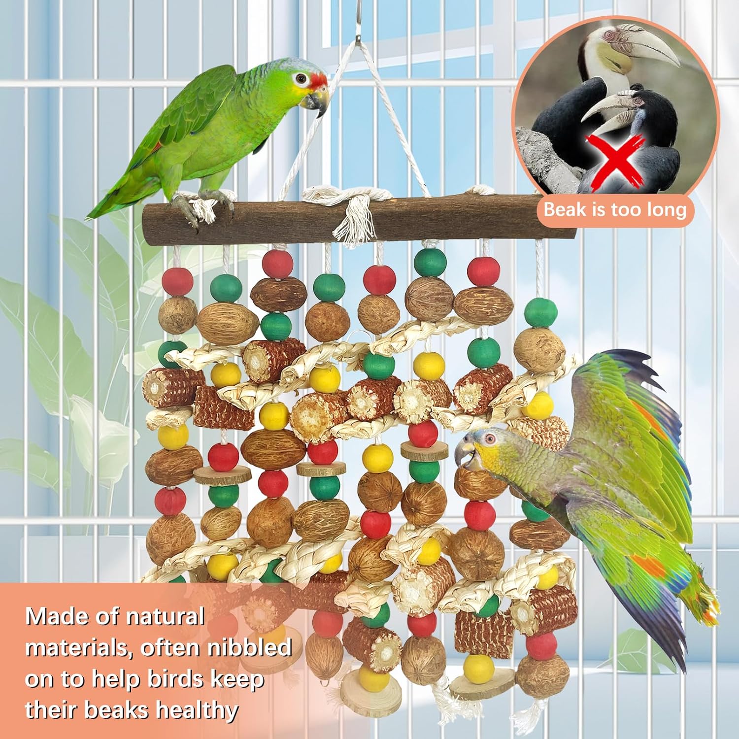 PINVNBY Large Parrot Toys Natural Nuts Corn Cob Wooden Chewing Tearing Toy for African Grey Macaws Amazon Cockatoos Eclectus Conures Cockatiels Cockatoo and Large Medium Parrot Birds (Colorful)