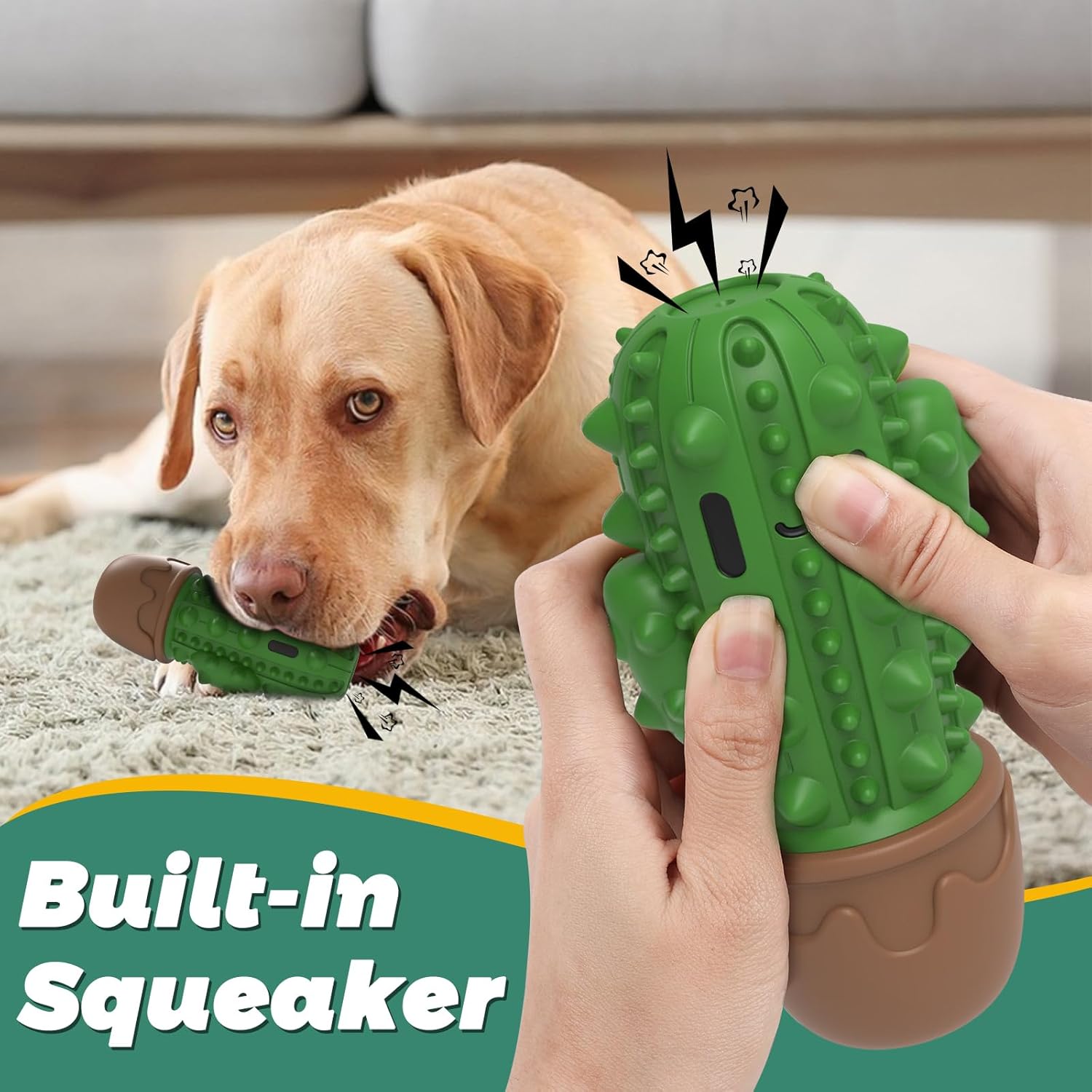- Beef Favor:Our toys are flavored with beef to attract the dog's attention.If you still have problems your dog doesn't like, add a bit of toothpaste and a dog's favorite snack to the hole at the bottom of the cactus to attract their attention and make chewing more fun