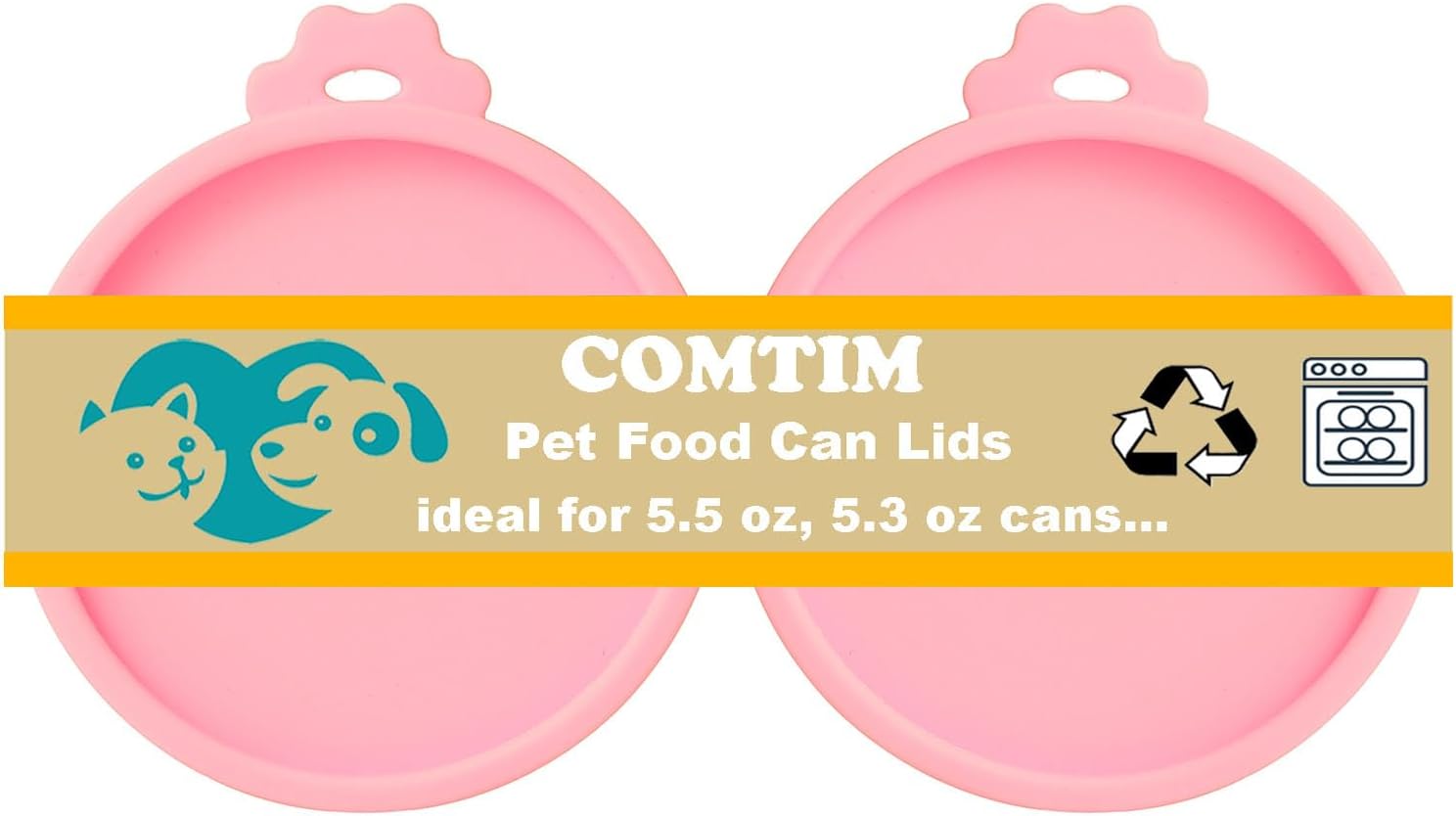 Comtim Cat Food Can Covers Lids for 5.5 oz Cans, 2 Pack Silicone Cat Food Can Lids for 5.5 oz 5.3 oz Cans...Pet Food Can Covers Reusable Can Toppers Savers for Wet Food (Pink)