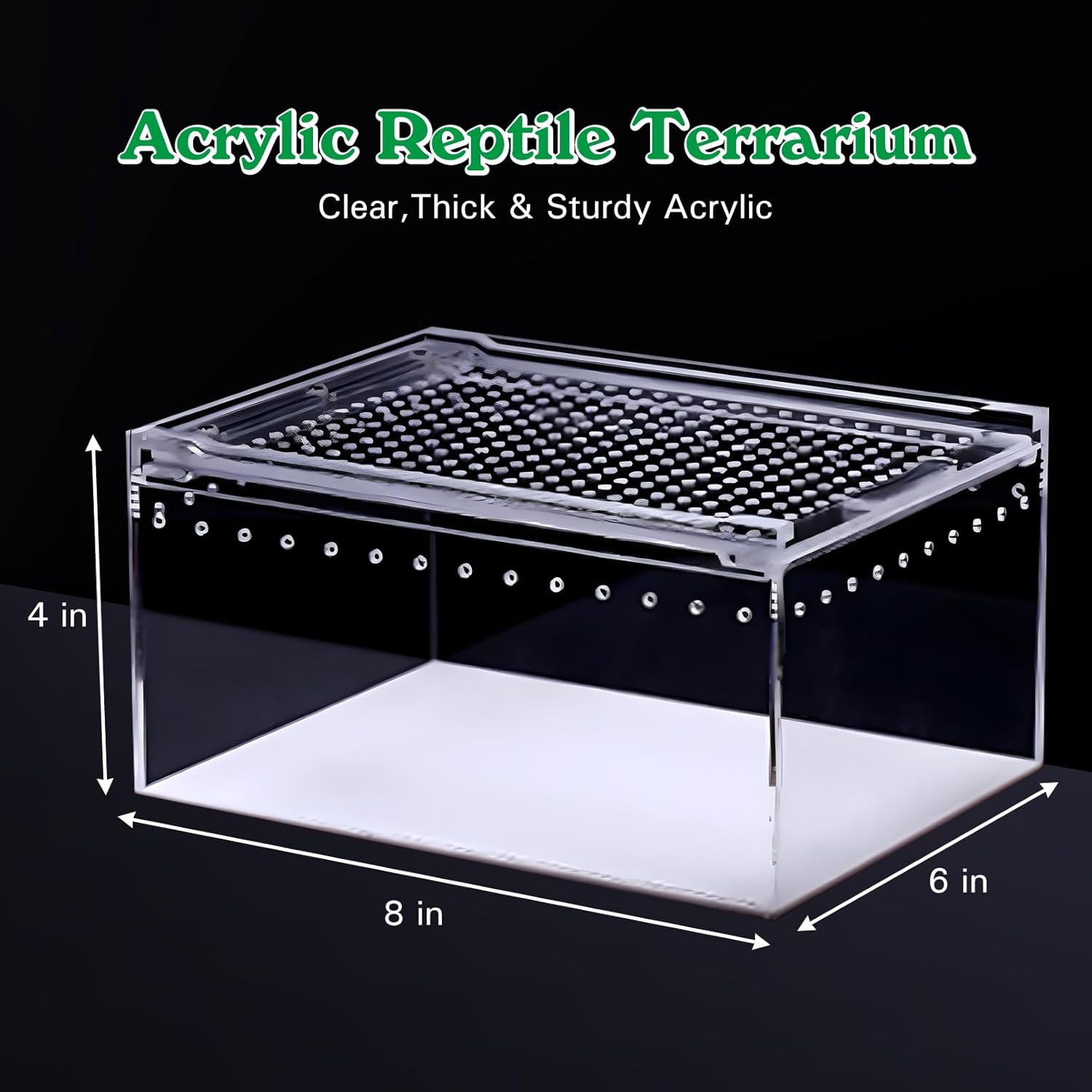 Reptile Terrarium Enclosure 8"x6"x4" Acrylic Tarantula Breeding Box Magnetic Hermit Crab Habitat Tank Transparent Jumping Spider Cage for Lizard Scorpion Sling Isopods Invertebrates Insect