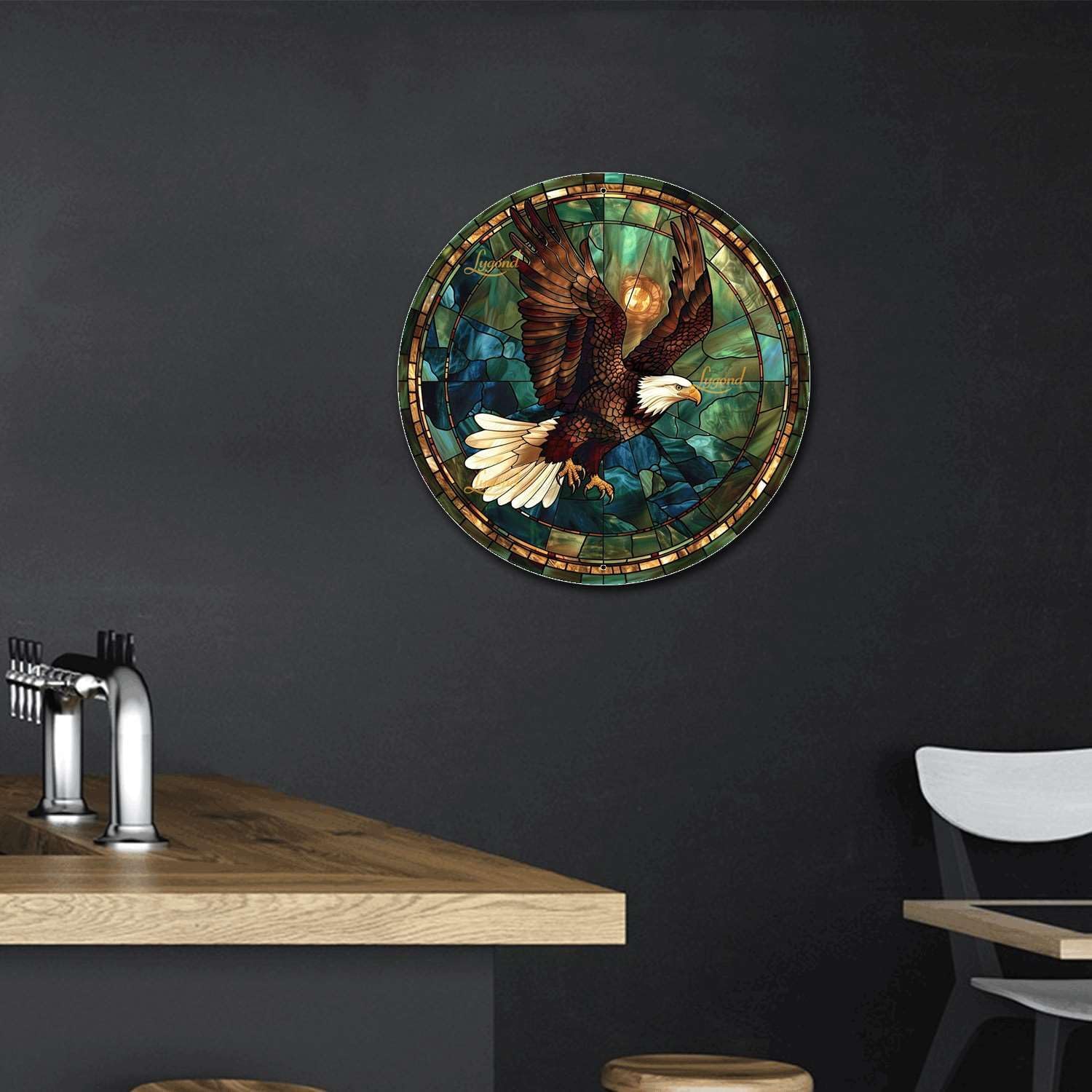Lygond Metal Sign Tin Sign Circular Stained Glass American Bald Eagle Garden Sign for Restaurant 12×12 Inches