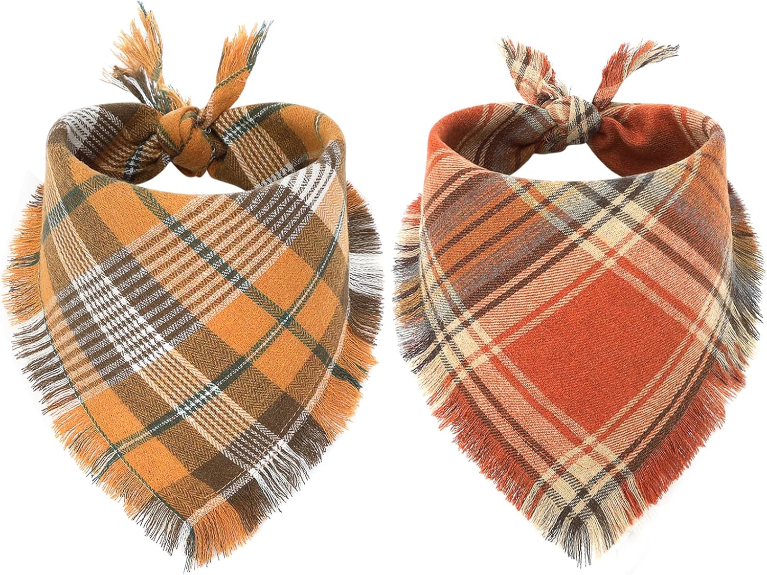 - INTERESTING TWO-PACK SET - Includes one yellow plaid dog bandana and one orange plaid dog bandana. The classic colors and seasonal designs add a festive touch to any fall celebration. These thanksgiving dog bandanas make great gifts for pets, allowing them to join in the autumn fun and make your festivities even more memorable
