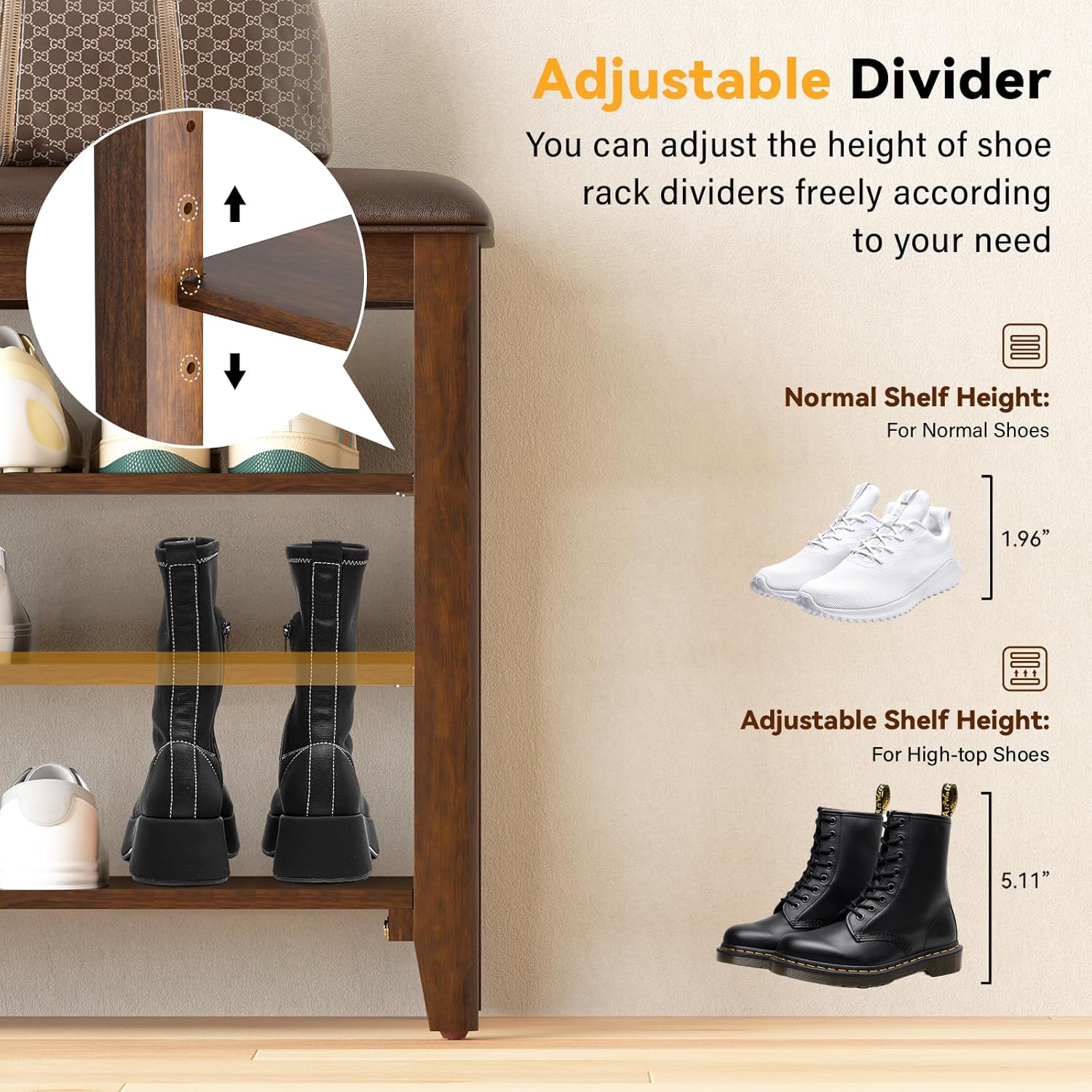 Shoe Bench Storage Rubberwood with Leather Cushion for Entryway Bench Ideal for Hallways Shoe Rack Front Doors Entrances Mudrooms Featuring 3 Height-Adjustable and Removable Shelves