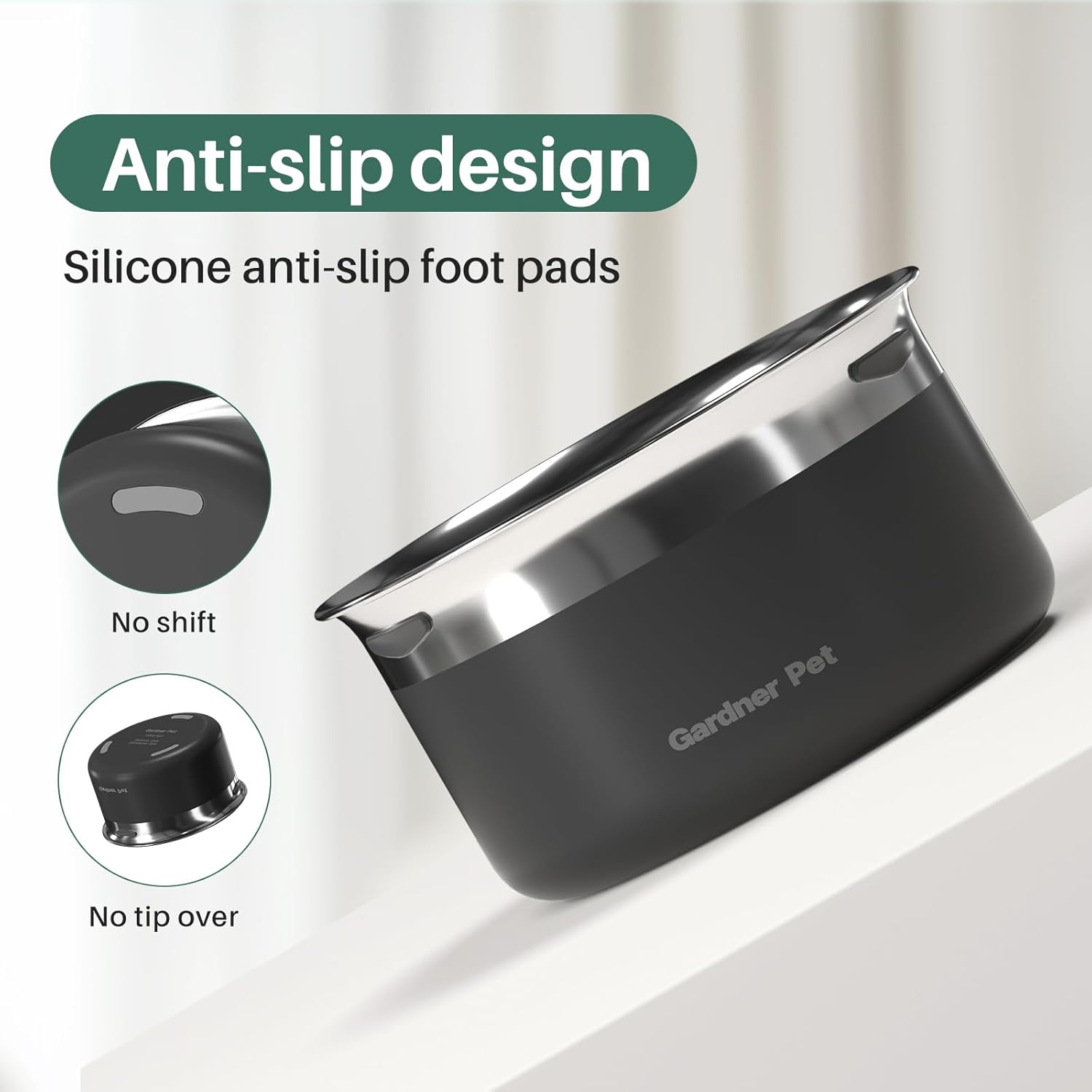 Gardner Pet Dog Bowls 1 Gallon (3.85L) Stainless Steel No Spill Dog Water Bowl, Slow Water Feeder Metal Bowls, Spill Proof Water Dispenser for Large Dogs, Promotes Healthy Hydration(Black)