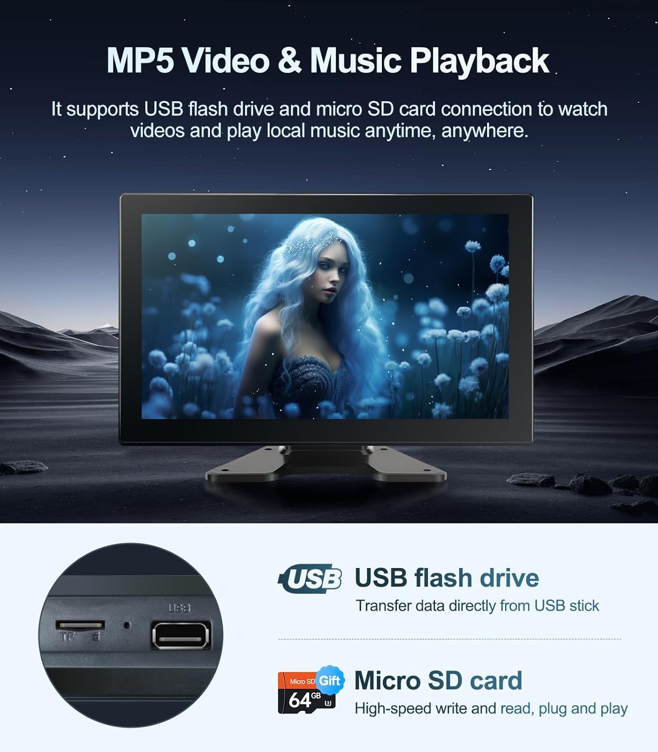 - 【Bluetooth & Entertainment】: The dash cam monitor is equipped with Bluetooth 5.0 and USB 2.0 ports, supports Bluetooth connection, USB flash drive devices to play videos and music, and comes with an extra 64GB SD Card to meet your storage needs, making your journey more relaxing and fun.