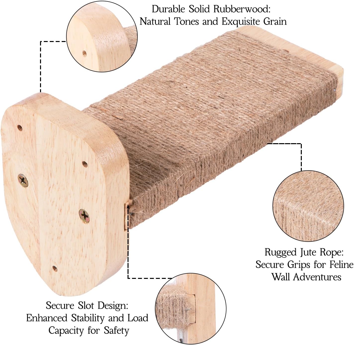 - 【Multifunctional cat wall furniture】This 3-piece set of cat wall steps is made of natural rubber wood, which is strong and stable. It not only meets the needs of cats for climbing and playing, but also, with its unique sisal rope covering design, provides an ideal scratching experience for cats. Whether used as an independent cat wall furniture or matched with other cat wall accessories, it can create a perfect activity space for your beloved cat.