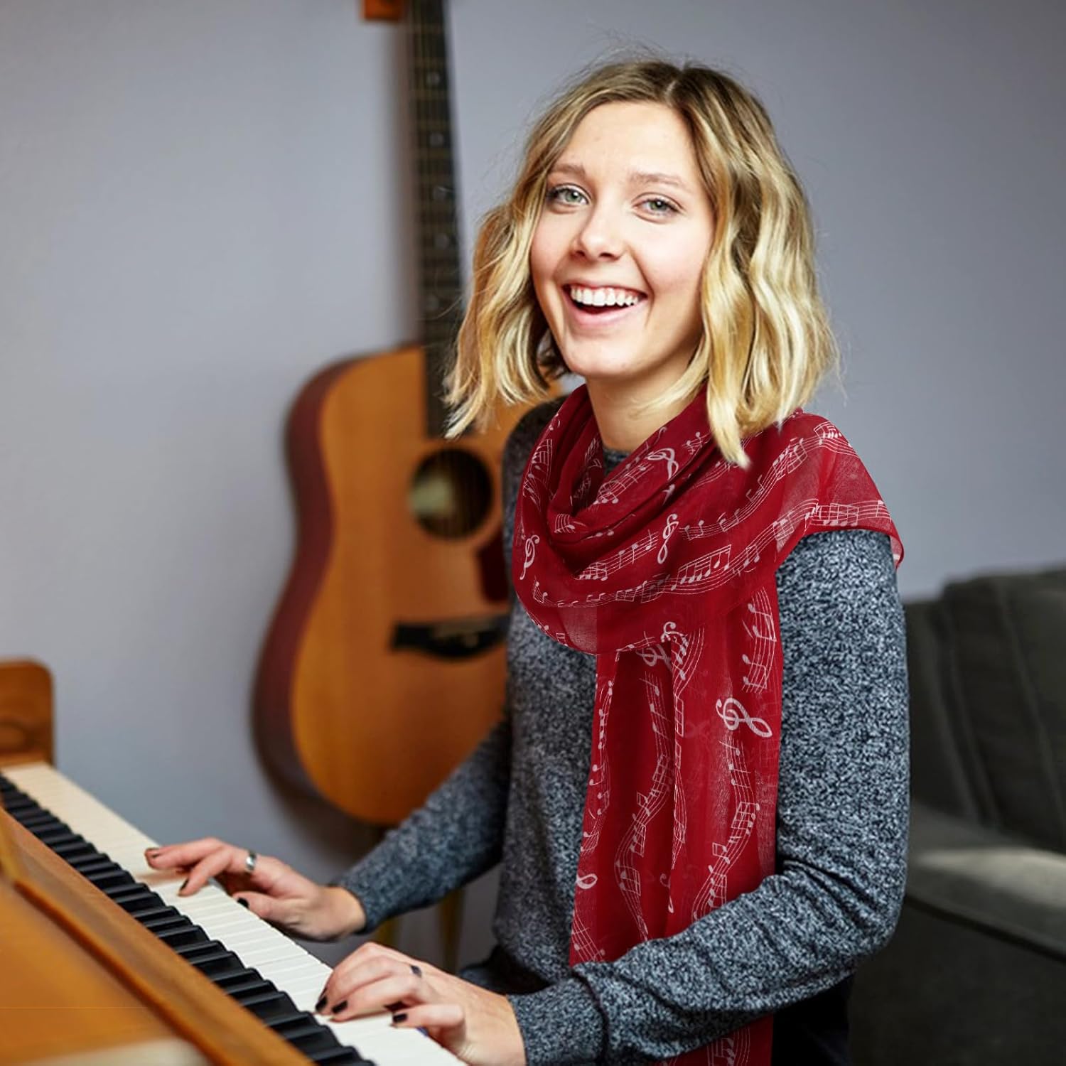 - Music Scarves Size:Our music themed gifts scarf size is 70x33 inche(180cmx85cm).This is a great idea for a christmas gifts! Bring beauty and warmth to those you love,unique music gifts for women Singers teachers music lovers